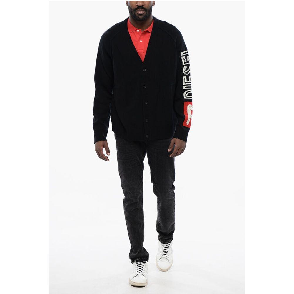 Весна-лето, черный, длинные рукава, логотип, вышивка, винтажный эффект, кардиган, V-образный вырез, пуговицы, P644248