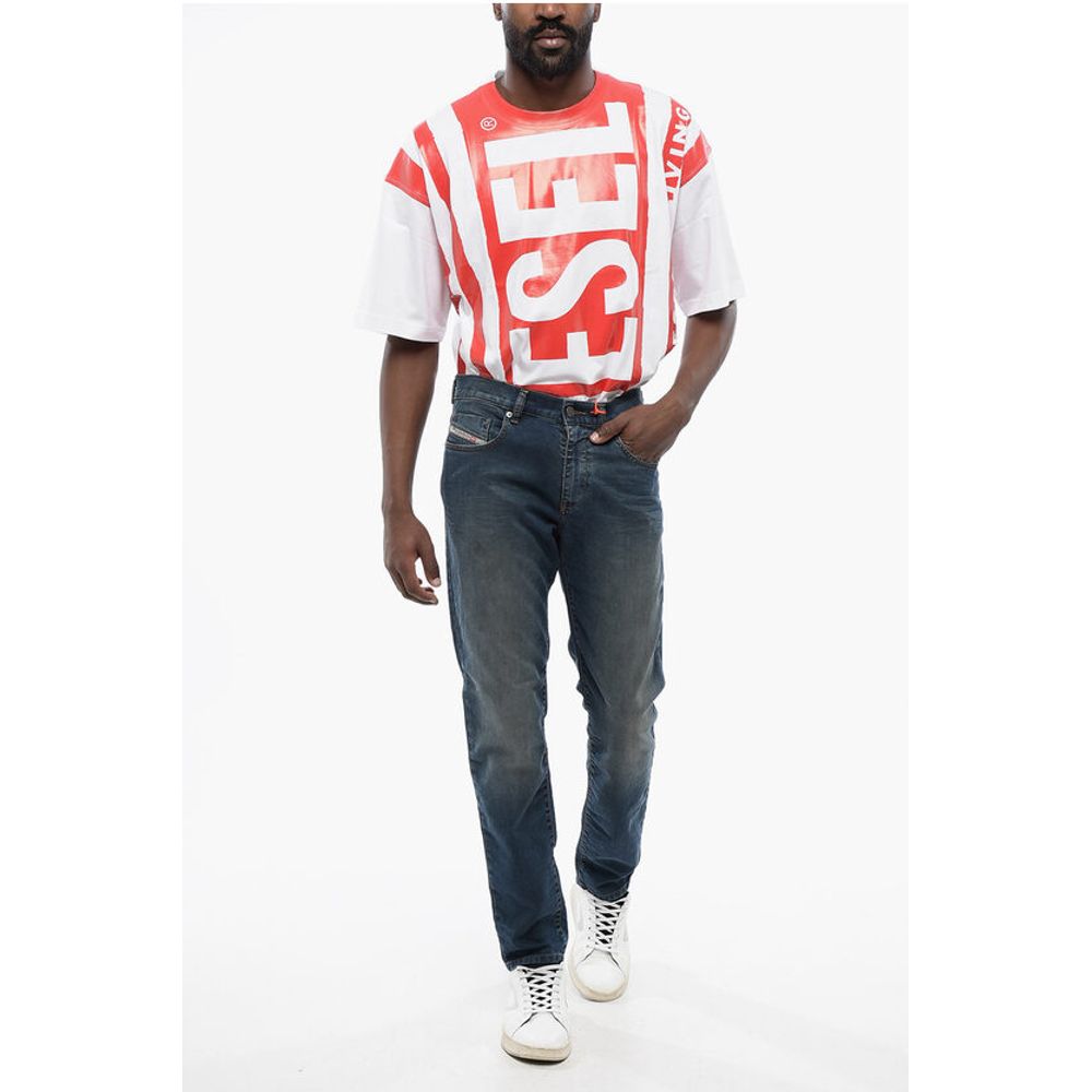 Denim Rules, весна-лето, синий, эластичный деним, 5 карманов, хлопковый деним, пуговицы, застежка-молния, шлевки для ремня, логотип, стандартный крой штанины, P644023, щиколотка: 16 см