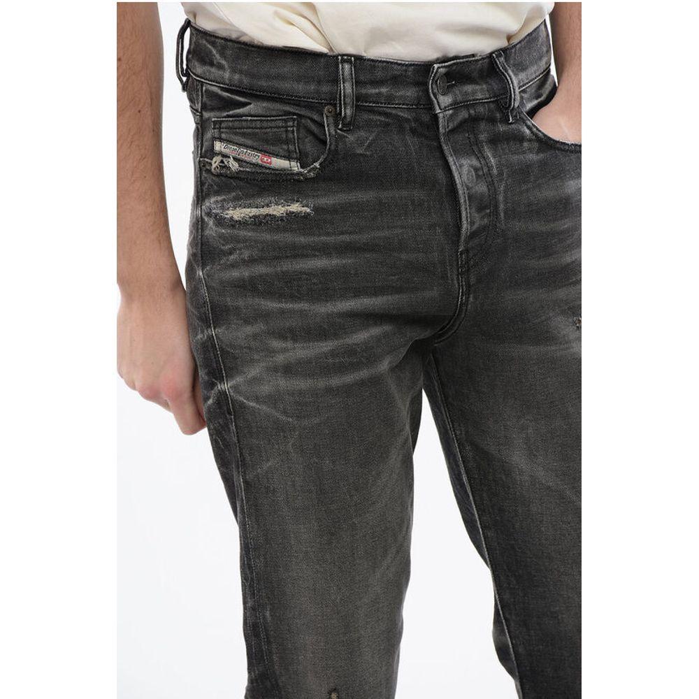 Denim Rules, эластичный деним, винтажный эффект, 5 карманов, хлопчатобумажный деним, контрастная отделка строчкой, пуговицы, шлевки, логотип, стандартный крой штанины, серый, весна-лето, P644019, щиколотка: 19 см, длина 32 см