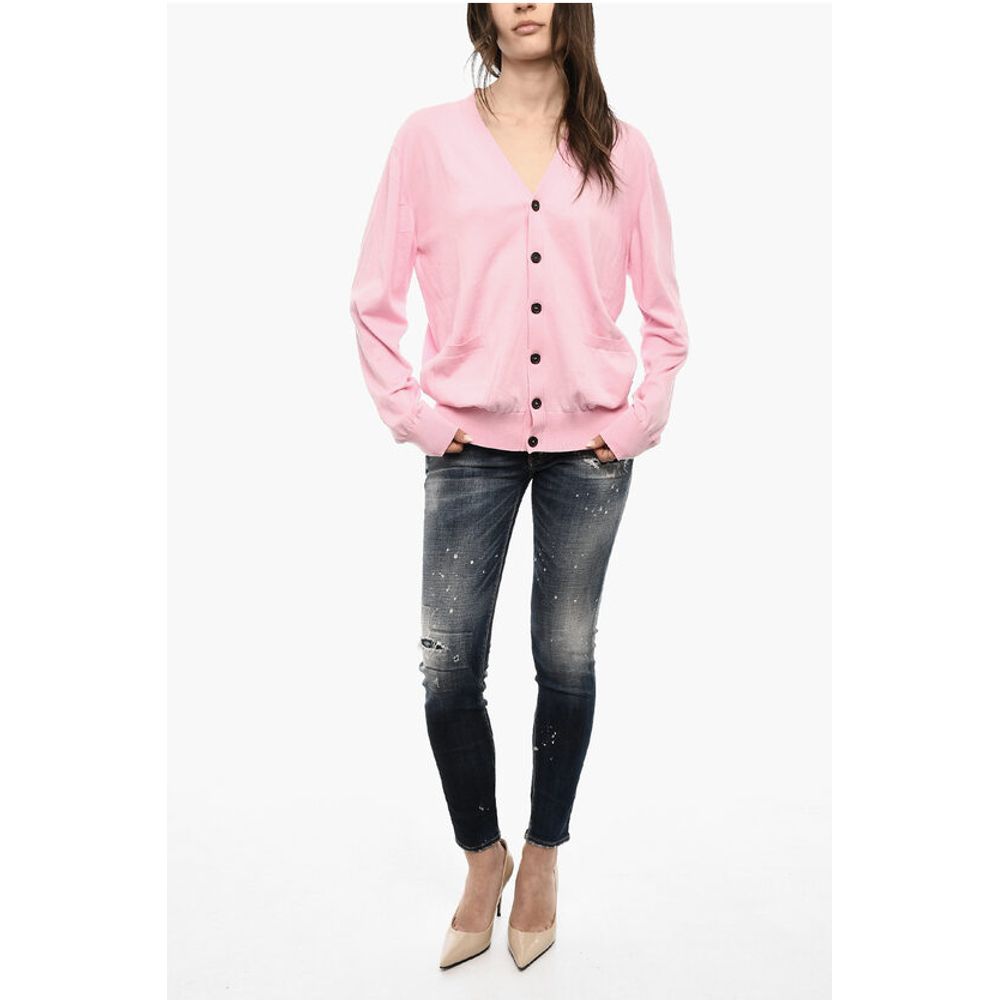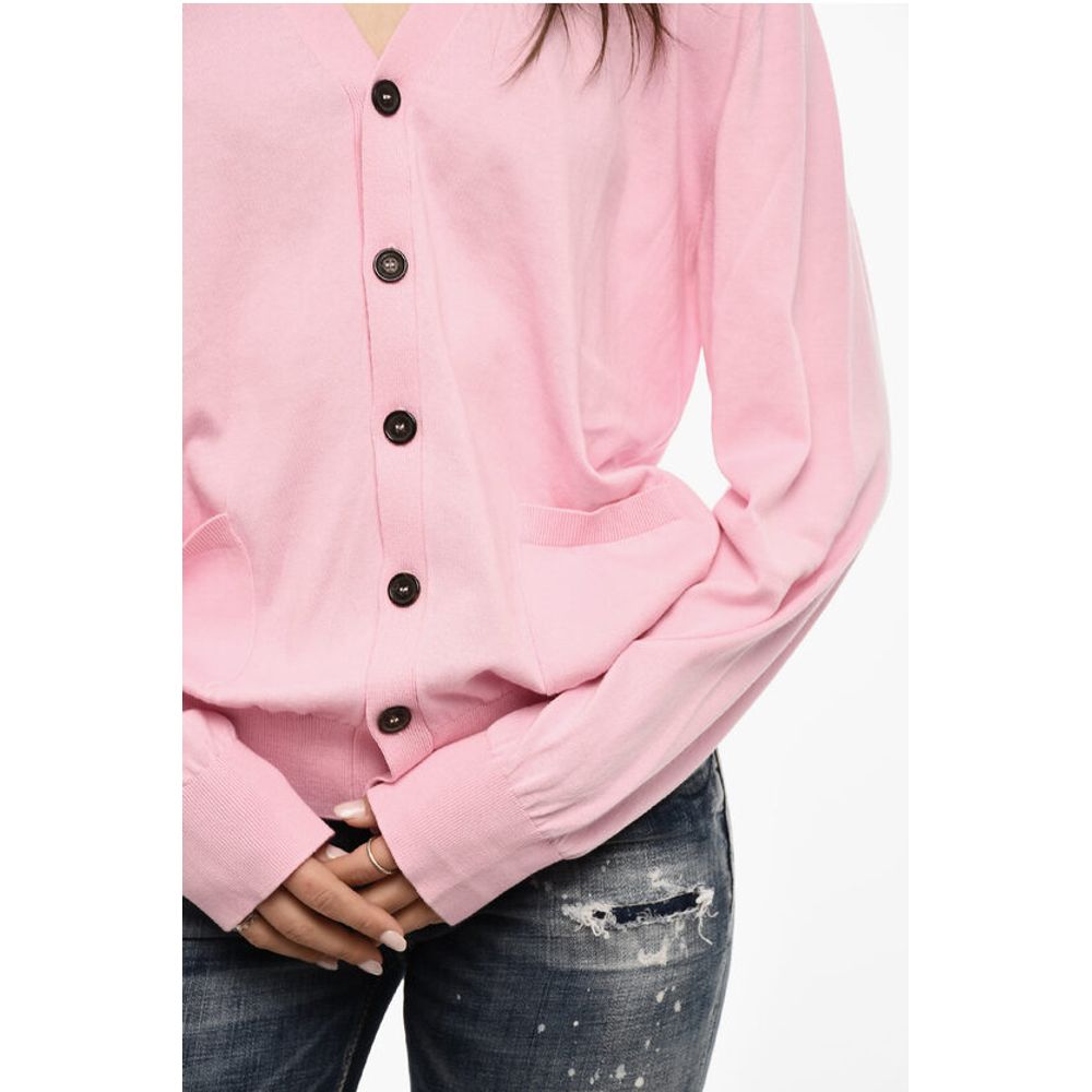 Осень-зима, розовый, пуговицы, длинные рукава, 2 кармана, легкий трикотаж, сделано в Италии, кардиган, V-образный вырез, P684609