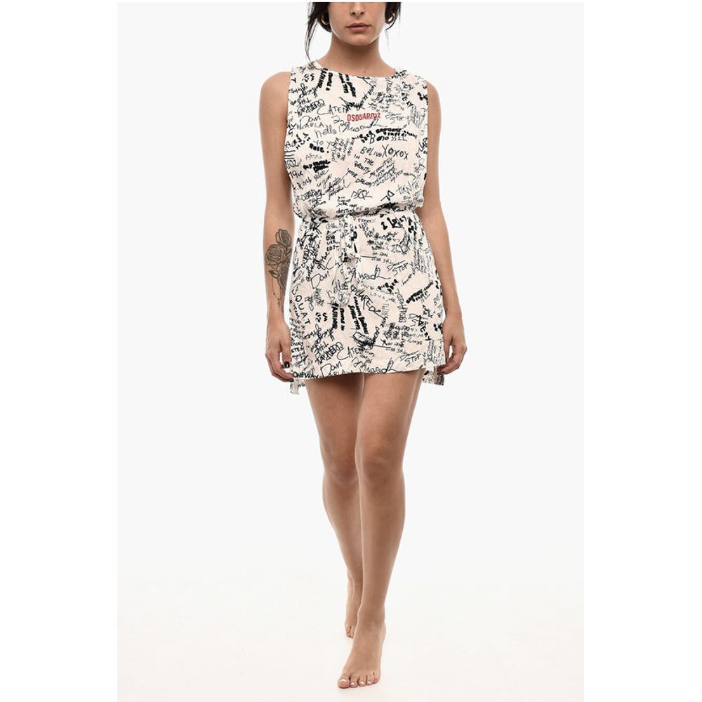 Весна-лето, Черно-белый, Без рукавов, Логотип, Пояс, Принт, Сделано в Италии, P682272