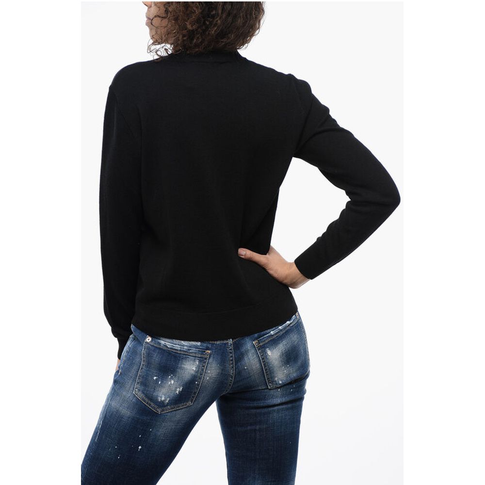 Весна-лето, Черный, Вышивка, Сделано в Италии, Трикотаж, Круглый вырез, Длинные рукава, Логотип, P645212