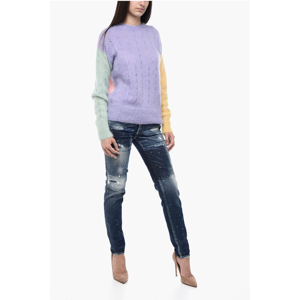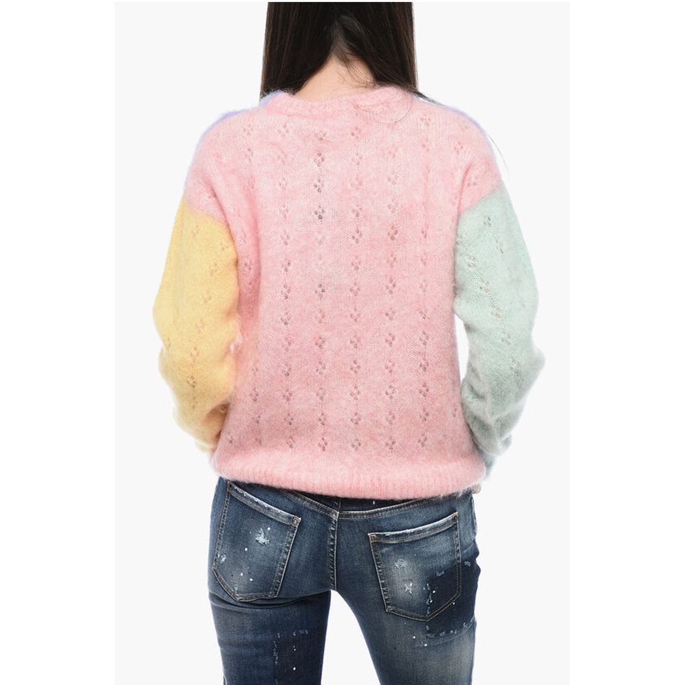 Осень-зима, разноцветный, круглый вырез, сделано в Италии, длинные рукава, РОЖДЕСТВЕНСКИЙ ПОДАРОК, СВЯТОЙ ВАЛЕНТИН, P601641, мохеровый ажурный свитер