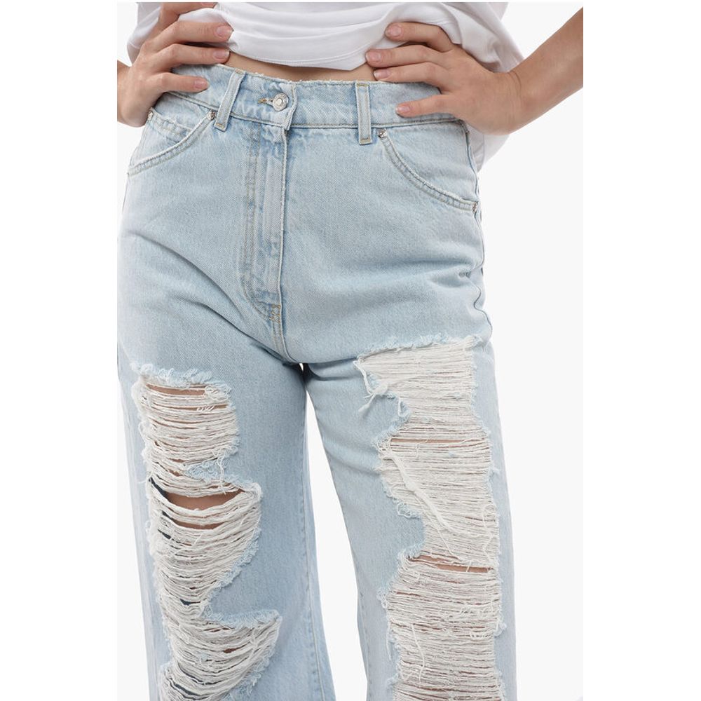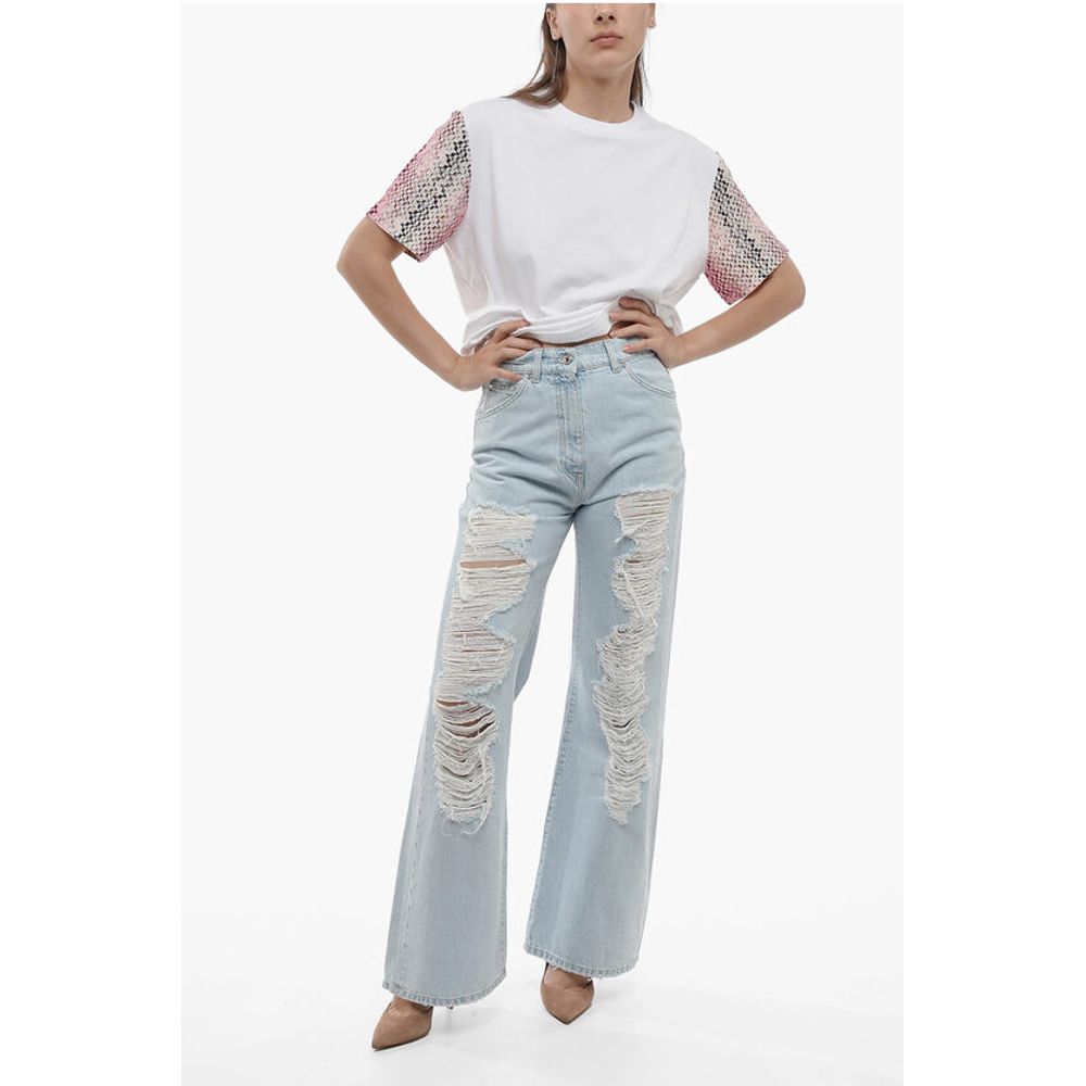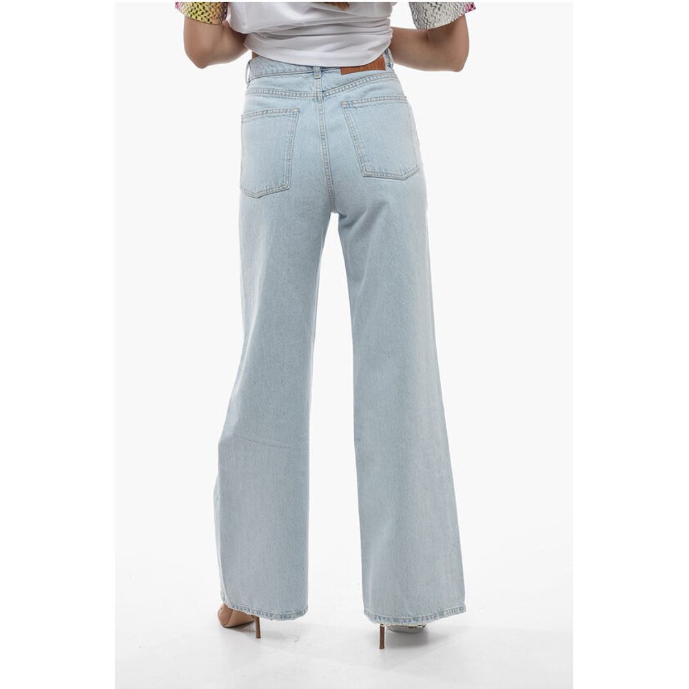 Denim Rules, Светлая стирка, Прорезные детали, Пуговицы, Сделано в Италии, Расклешенный и широкий крой, Весна-Лето, Светло-голубой, 5 карманов, Хлопковый деним, Застежка-молния, Шлевки для ремня, Повседневный, Отдельные детали, P591572, Длина до щиколотки 28 см