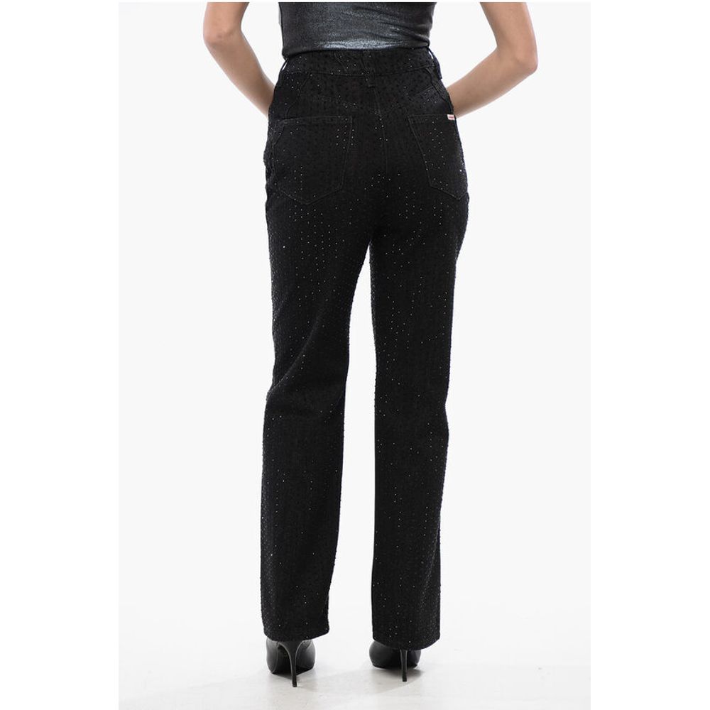 Denim Rules, SHINY, весна-лето, черный, темный цвет, 5 карманов, джинсовый хлопок, пуговицы, застежка-молния, вышивка, логотип, шлевки для ремня, стандартный крой штанины, P628742, щиколотка: 21 см