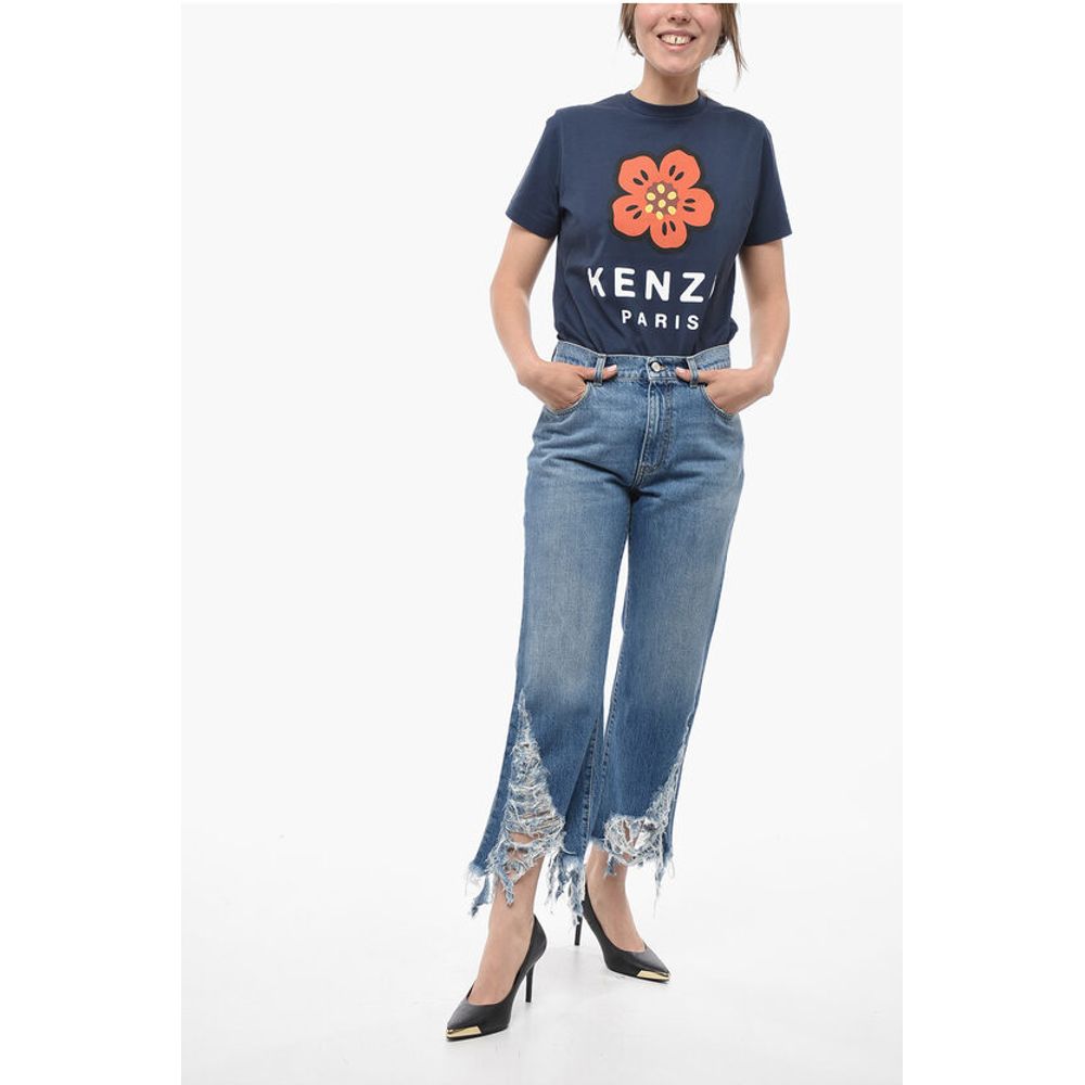 Прорези, 5 карманов, Хлопковый деним, Пуговицы, Застежка-молния, Шлевки для ремня, Сделано в Италии, Стандартный крой штанины, Весна-Лето, Синий, Denim Rules, P586031, Длина до щиколотки 24 см