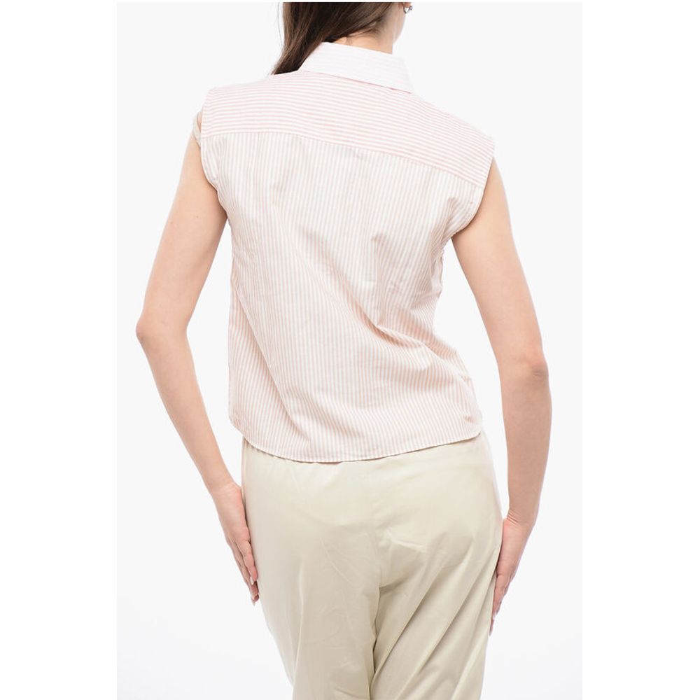 Весна-лето, французский воротник, розовый, полосы, пуговицы, без рукавов, нагрудный карман, застежка спереди, оранжевый, P642744