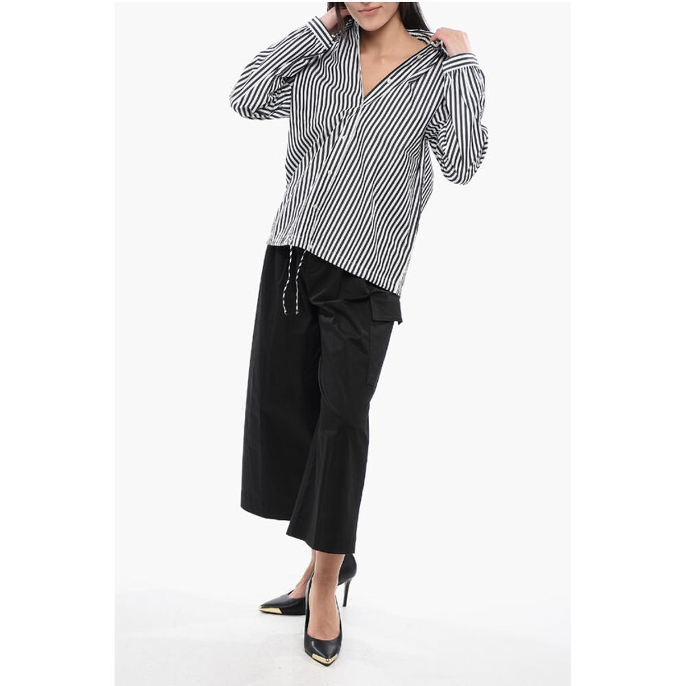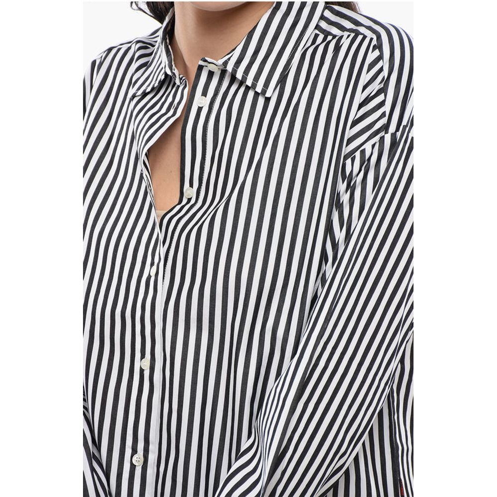 Весна-лето, французский воротник, черный и белый, пуговицы, завязка на талии, полосы, длинные рукава, сделано в Португалии, застежка спереди, P642737