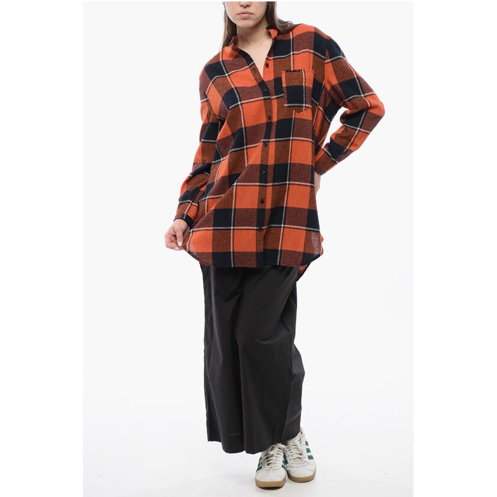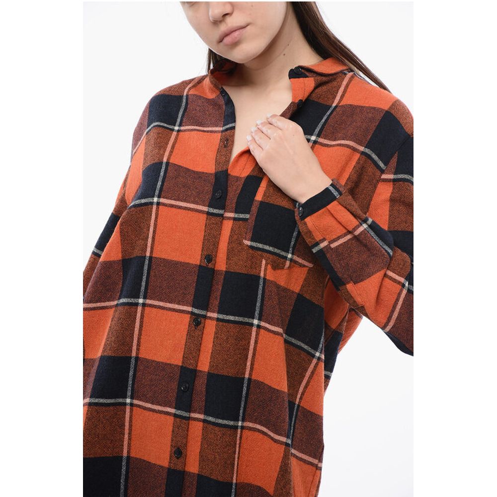 Весна-лето, Сделано в Италии, Клетчатый дизайн, Пуговицы, Длинные рукава, Нагрудный карман, Оранжевый, Рукава на пуговицах, Застежка спереди, Синий, P642685