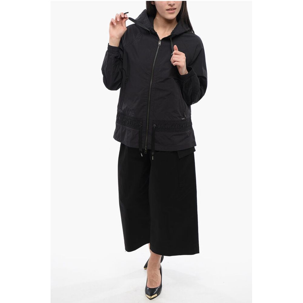 Весна-лето, черный, капюшон, длинные рукава, застежка-молния, карманы, затягивающийся шнурок на талии, P642682