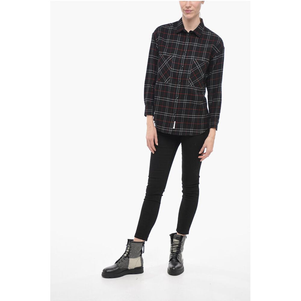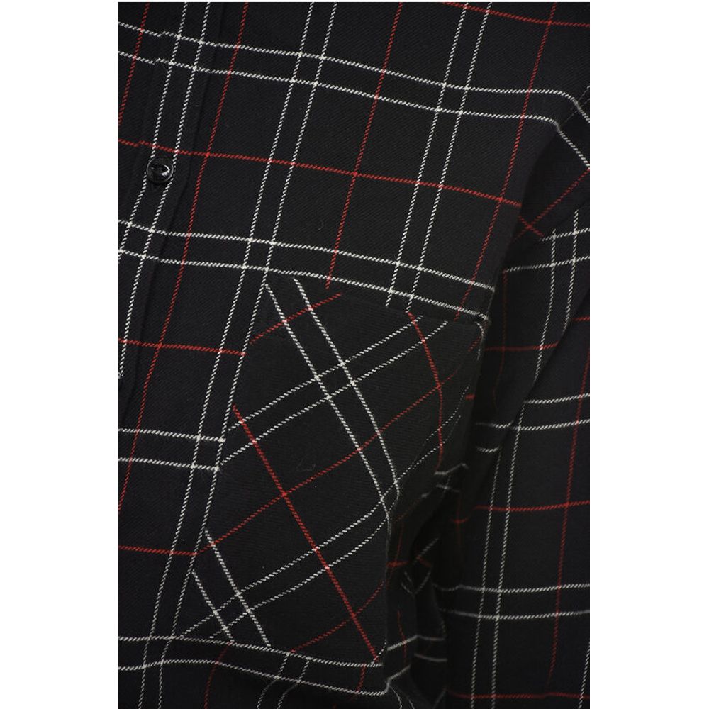 Осень-зима, французский воротник, черный, клетчатый дизайн, нагрудный карман, длинные рукава, пуговицы, сделано в Италии, ST VALENTINE, P591273