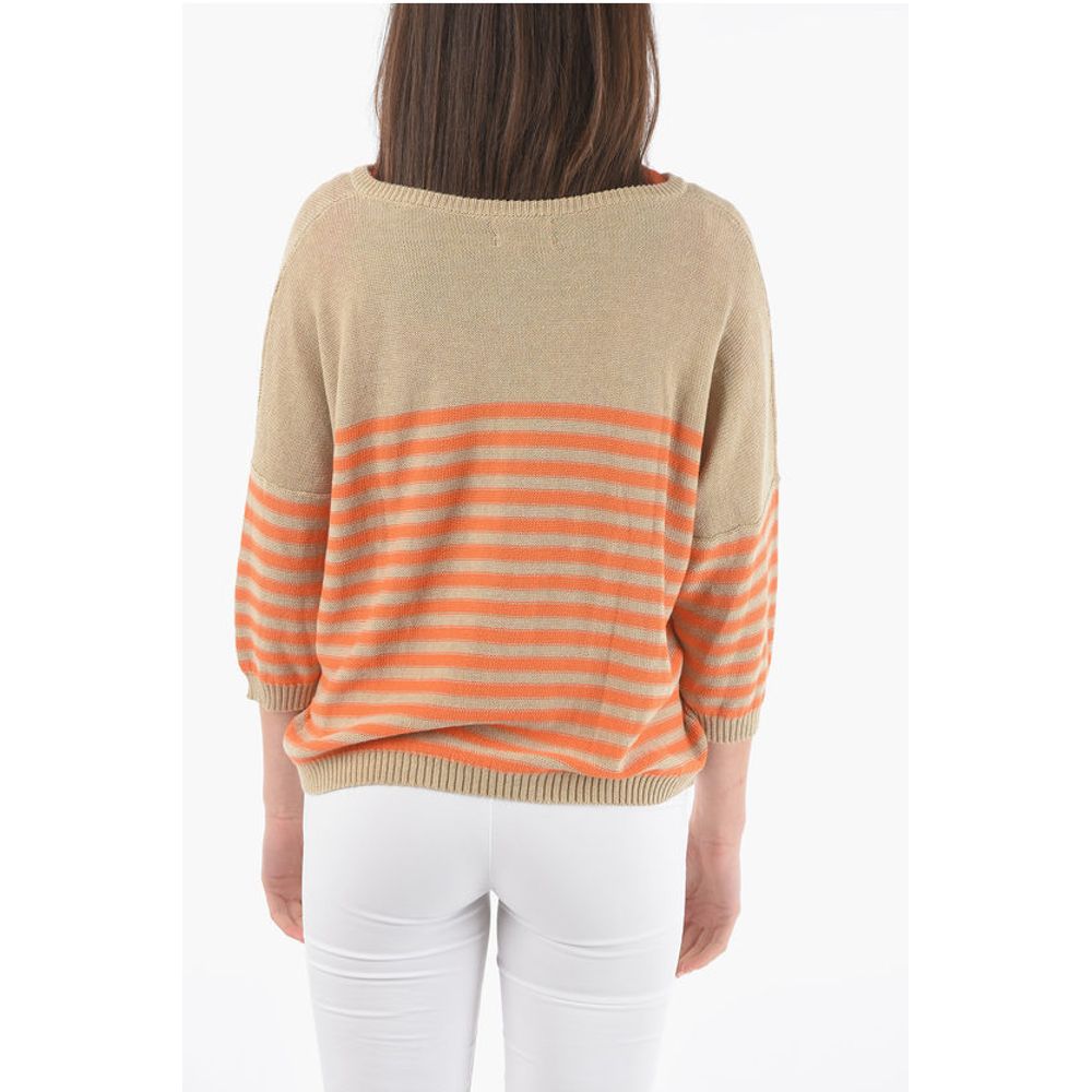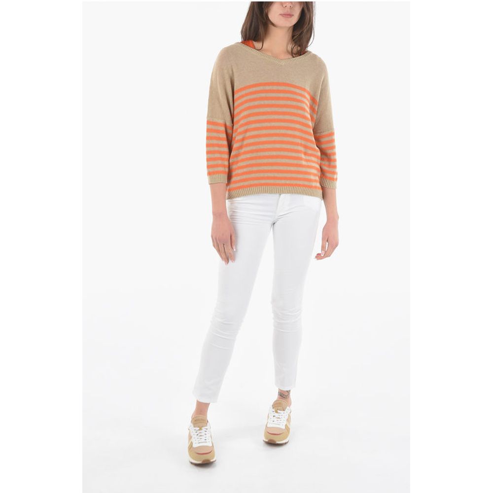 Полоски, рукава 3/4, оранжевый, трикотаж, V-образный вырез, сделано в Италии, легкий трикотаж, весна-лето, бежевый, отдельные детали, ST VALENTINE, EARTH NUANCES, Co: 100%, P466129