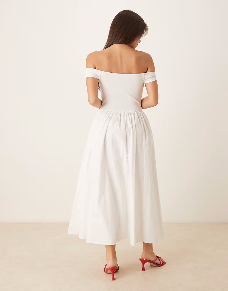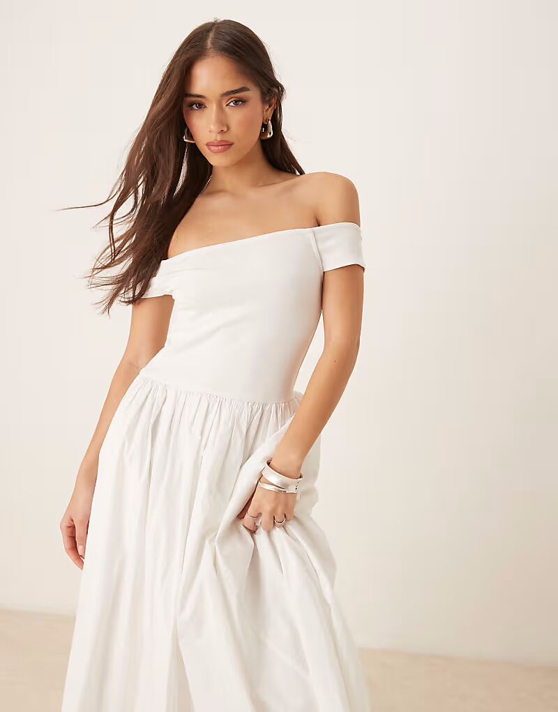 Платье-миди с вырезом-бардо Nobody's Child белого цвета