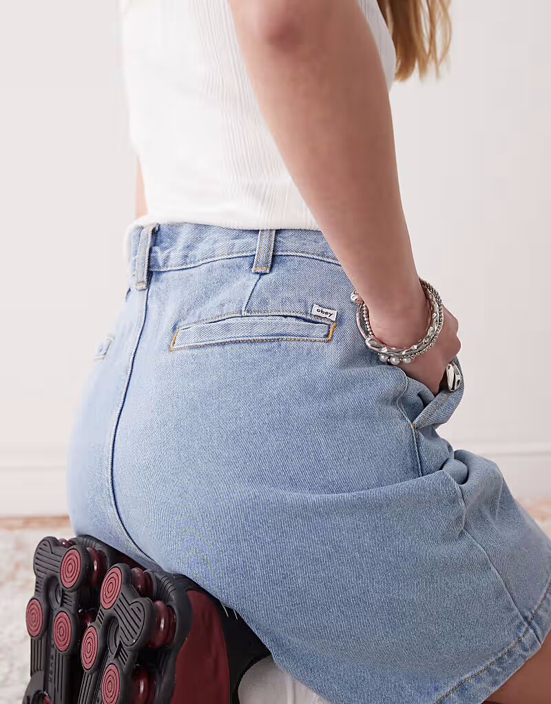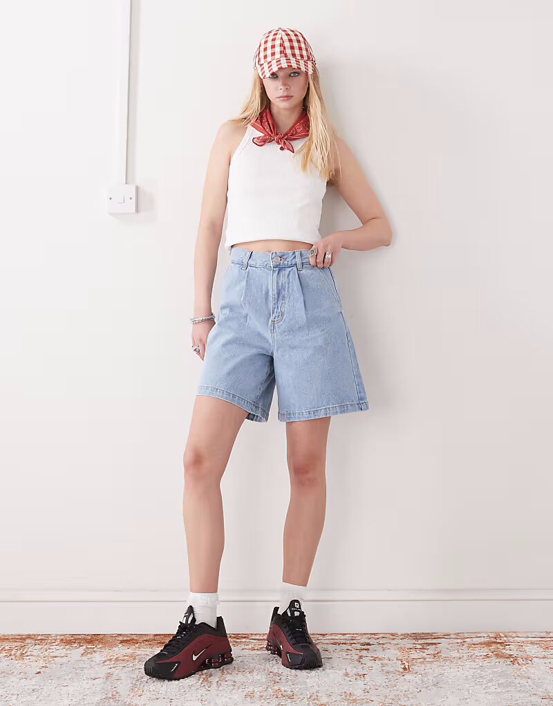 Джинсовые шорты со складками Obey Eli светло-голубого цвета