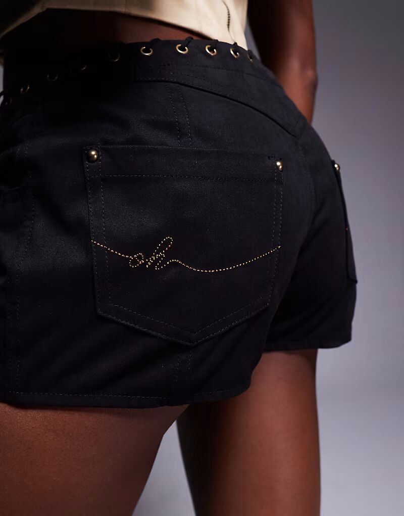 Шорты из денима со шнуровкой Oh Polly Parva черного цвета