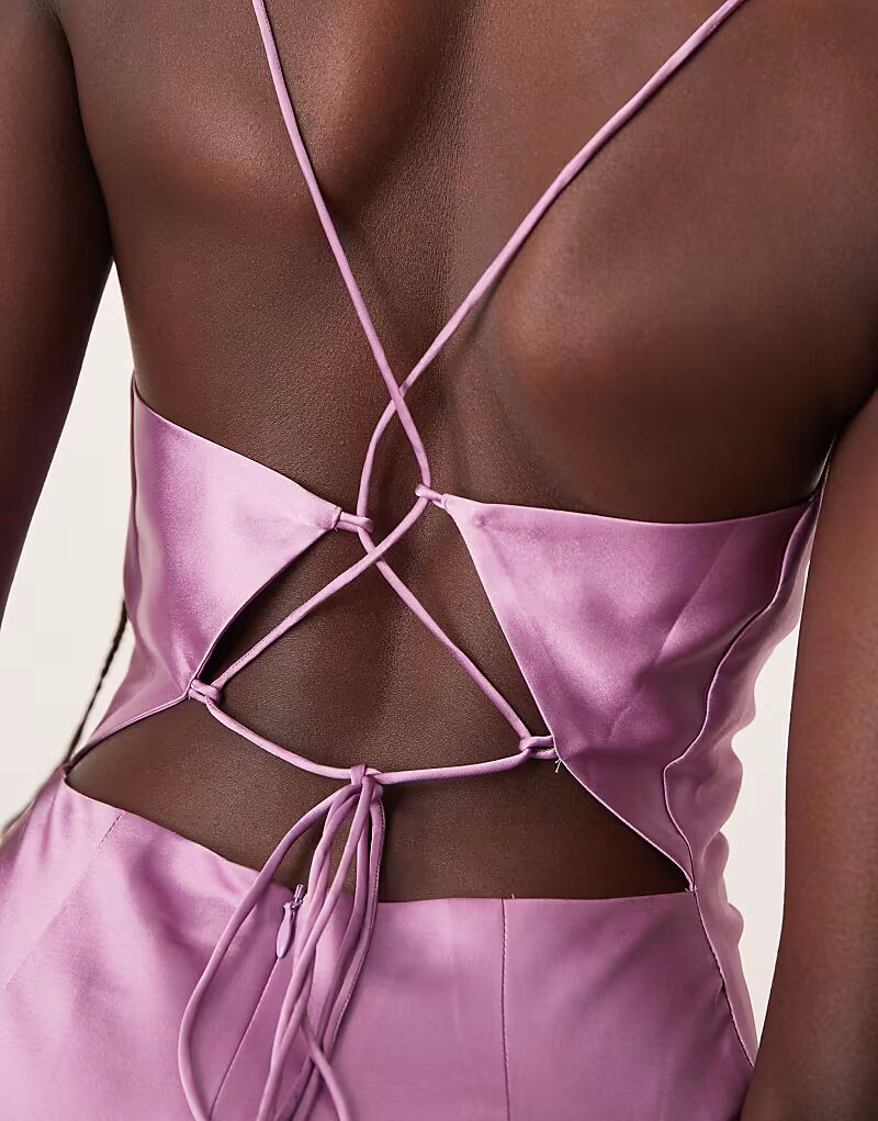 Ткань типа атласа: блестящая, драпирующаяся и шелковисто-гладкая.