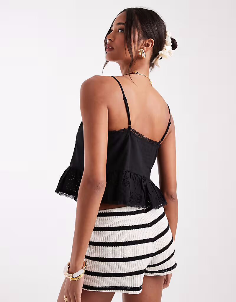 ONLY укороченная майка с вышивкой черного цвета