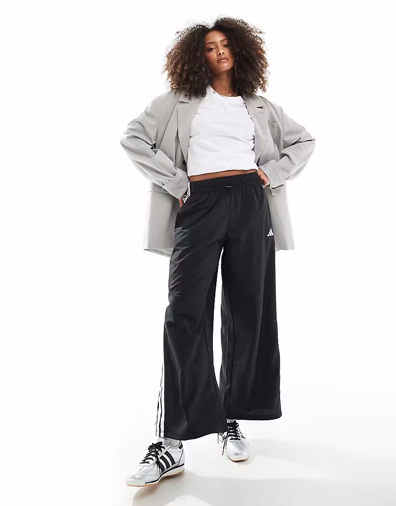 Парашютные брюки Adidas Essentials с тремя полосками в черном и белом цвете Adidas Performance