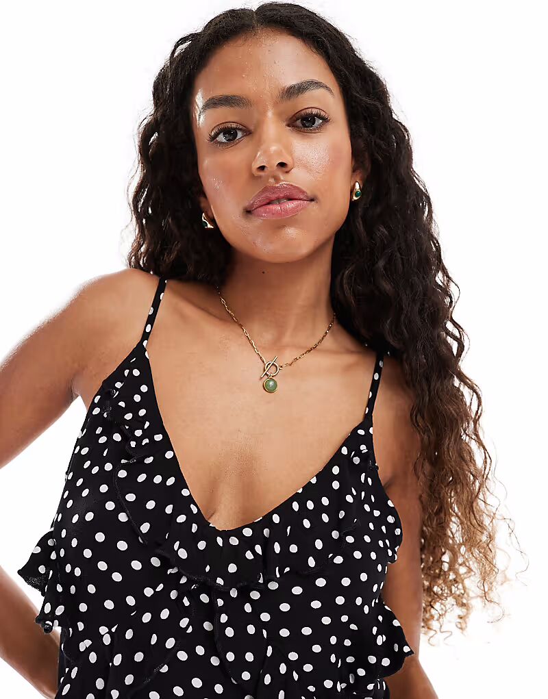 Мини-платье ONLY с оборками в черный горошек