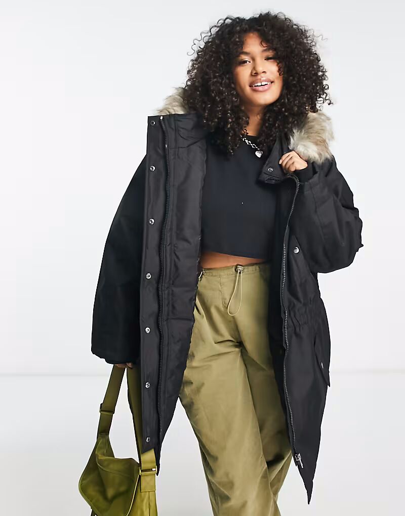 ONLY Curve парка с искусственным мехом на капюшоне черного цвета