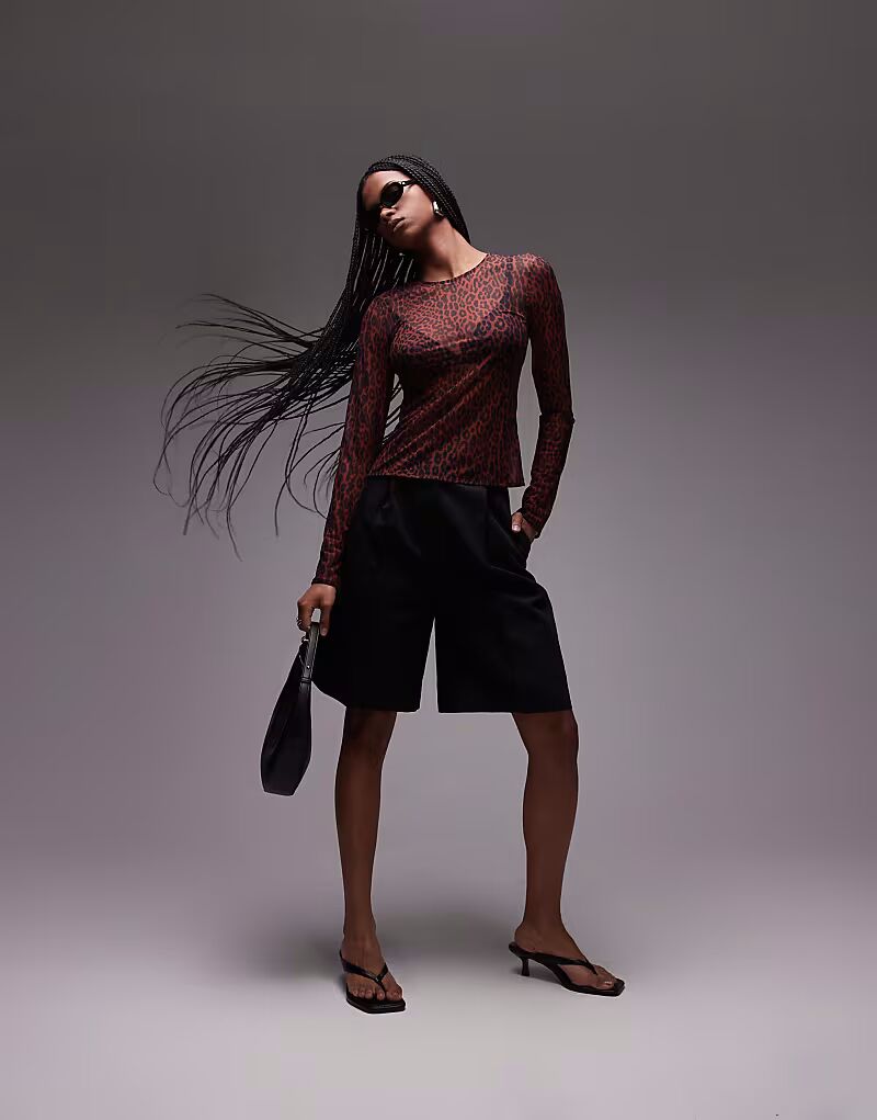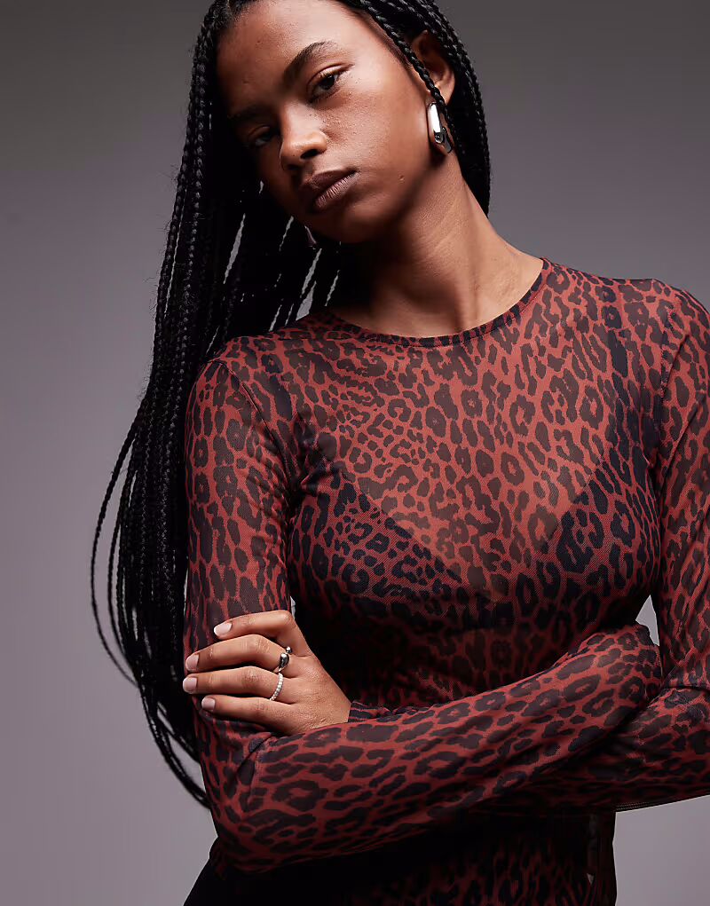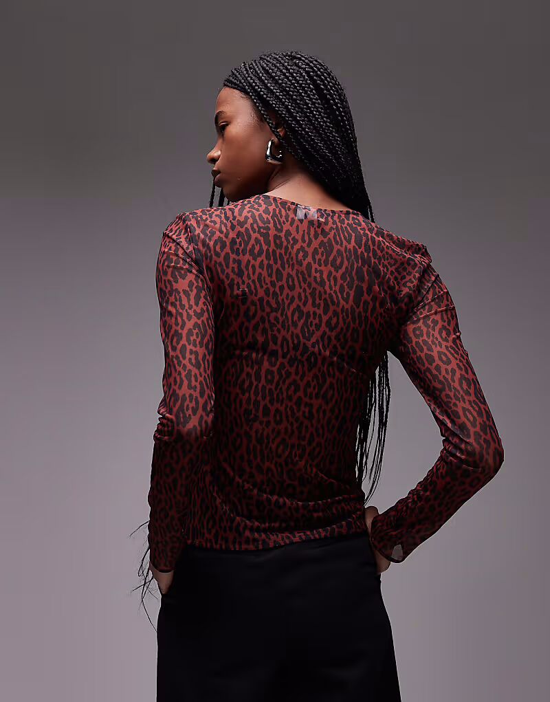 & Other Stories сетчатый топ с длинными рукавами и леопардовым принтом