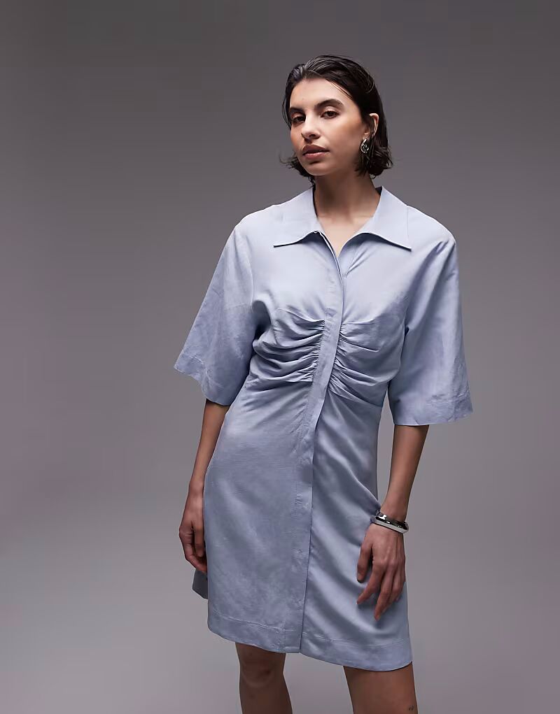 & Other Stories мини-платье-рубашка с рюшами спереди синего цвета