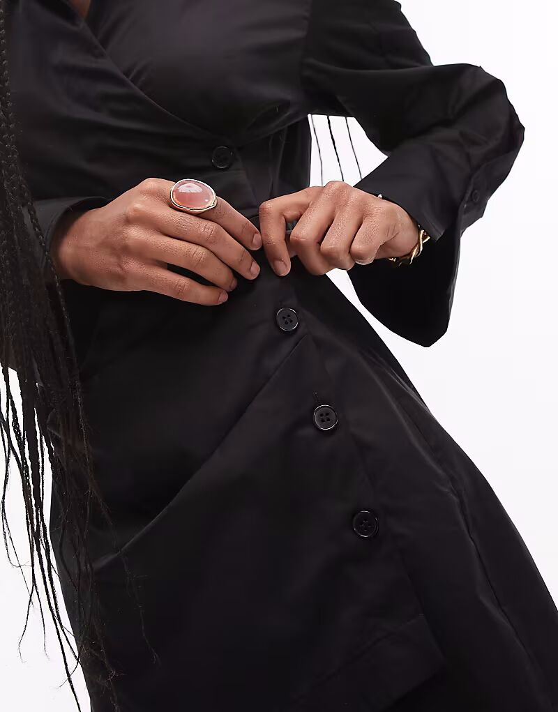 & Other Stories мини-платье-рубашка с рюшем спереди, черного цвета