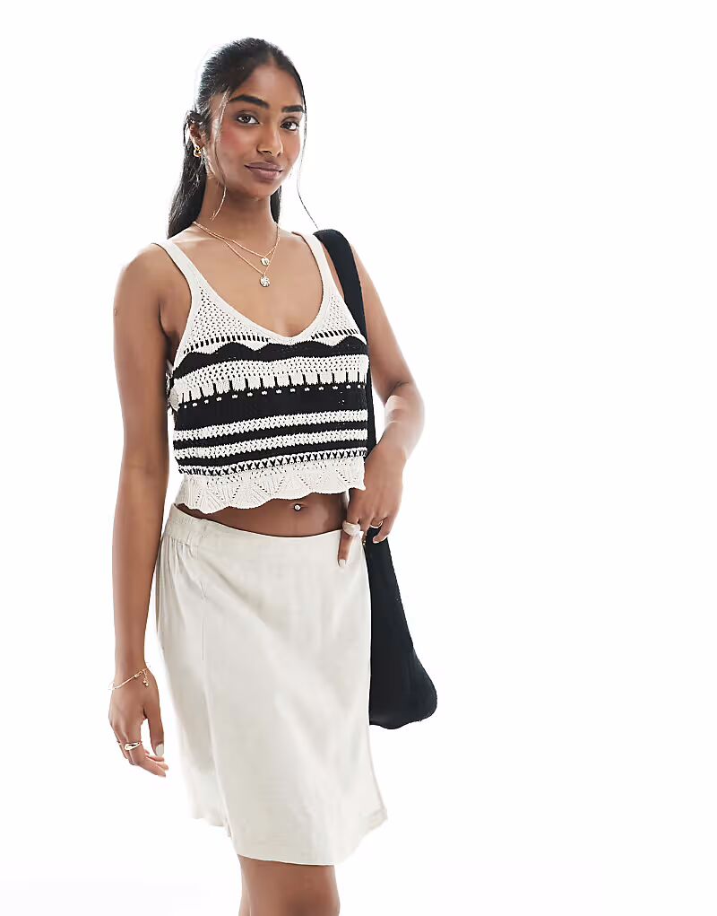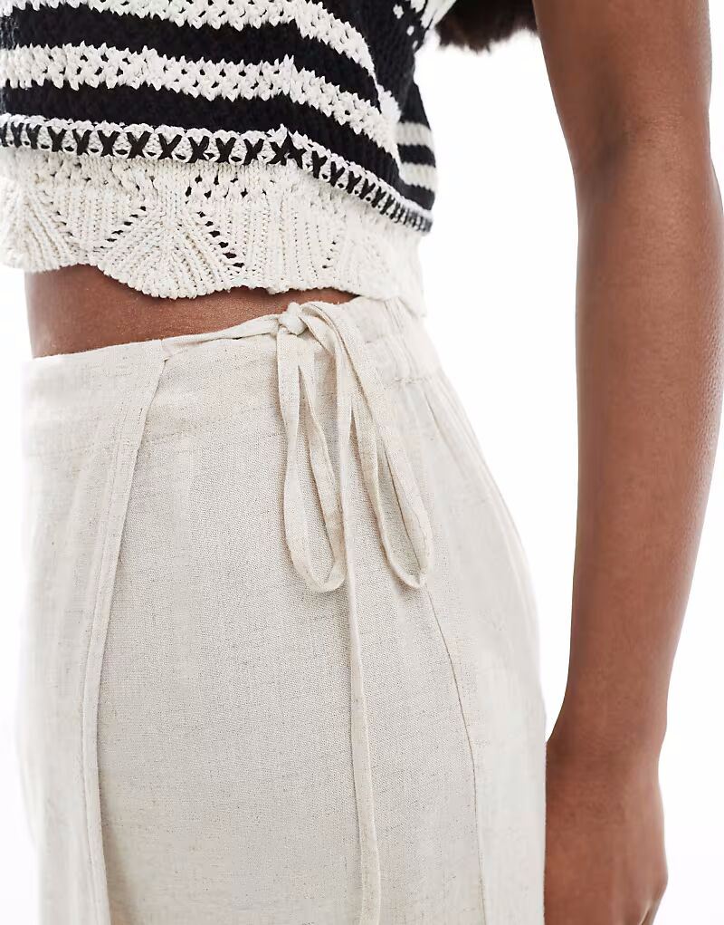 Мини-юбка Pieces из льна в цвете березовый крем