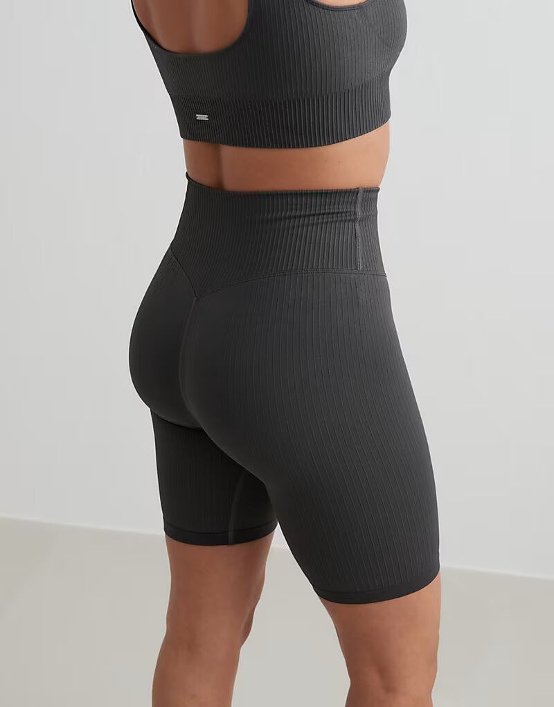 Бесшовные шорты Aim'n Shadow серого цвета в рубчик, цвет shadow grey