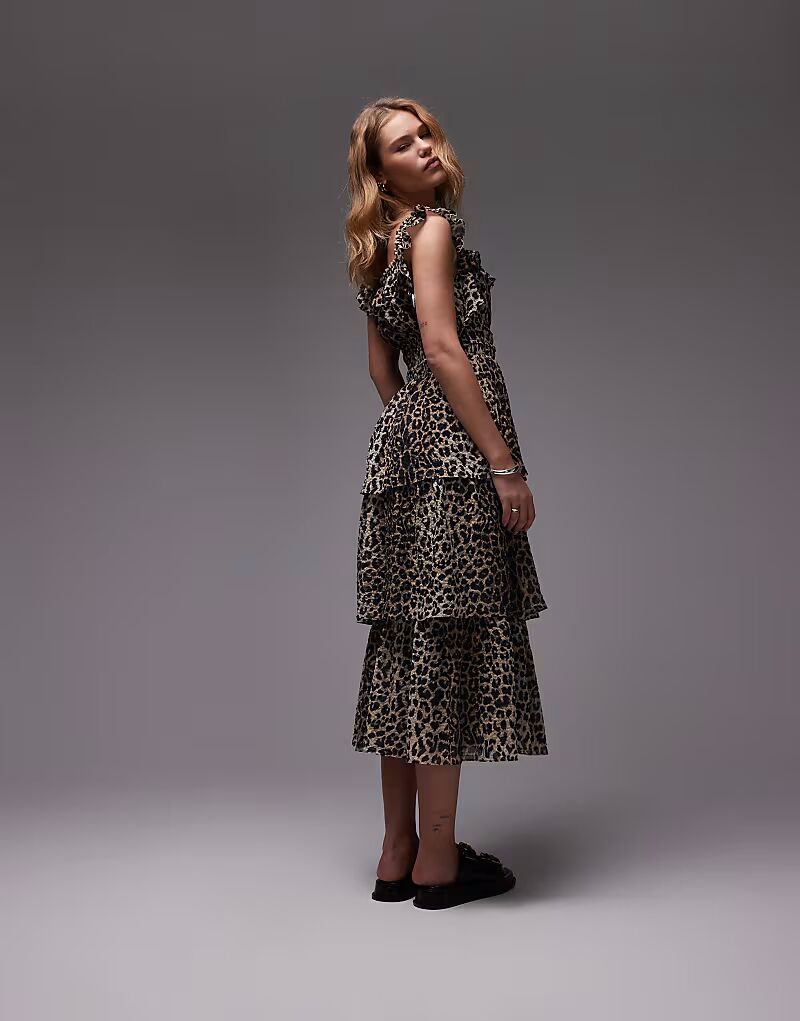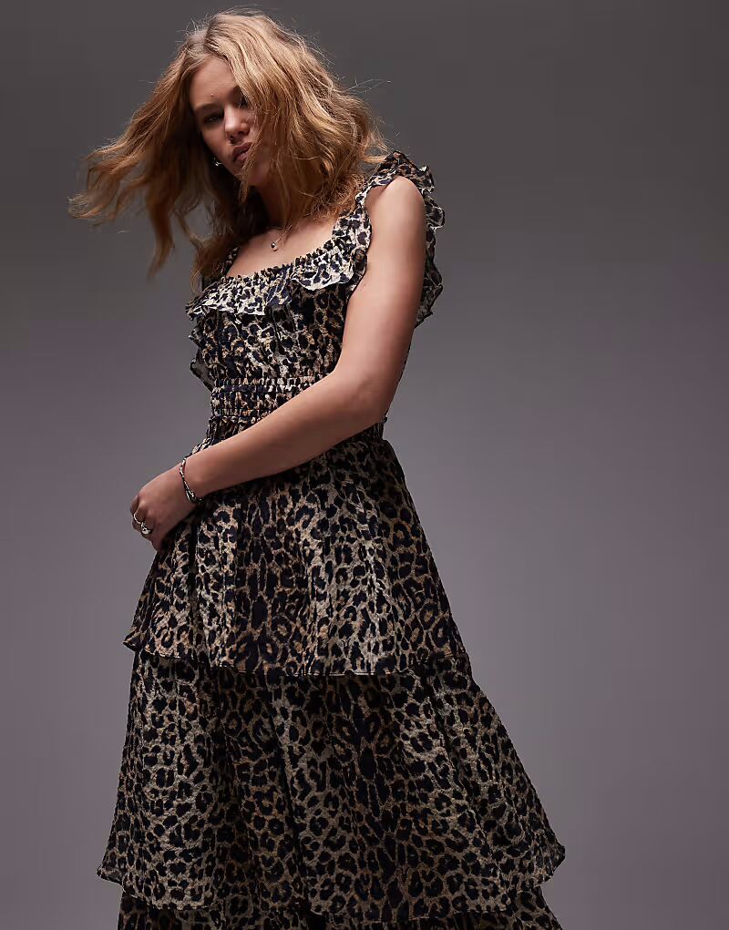 Многоярусное макси-платье AllSaints Salonda с леопардовым принтом