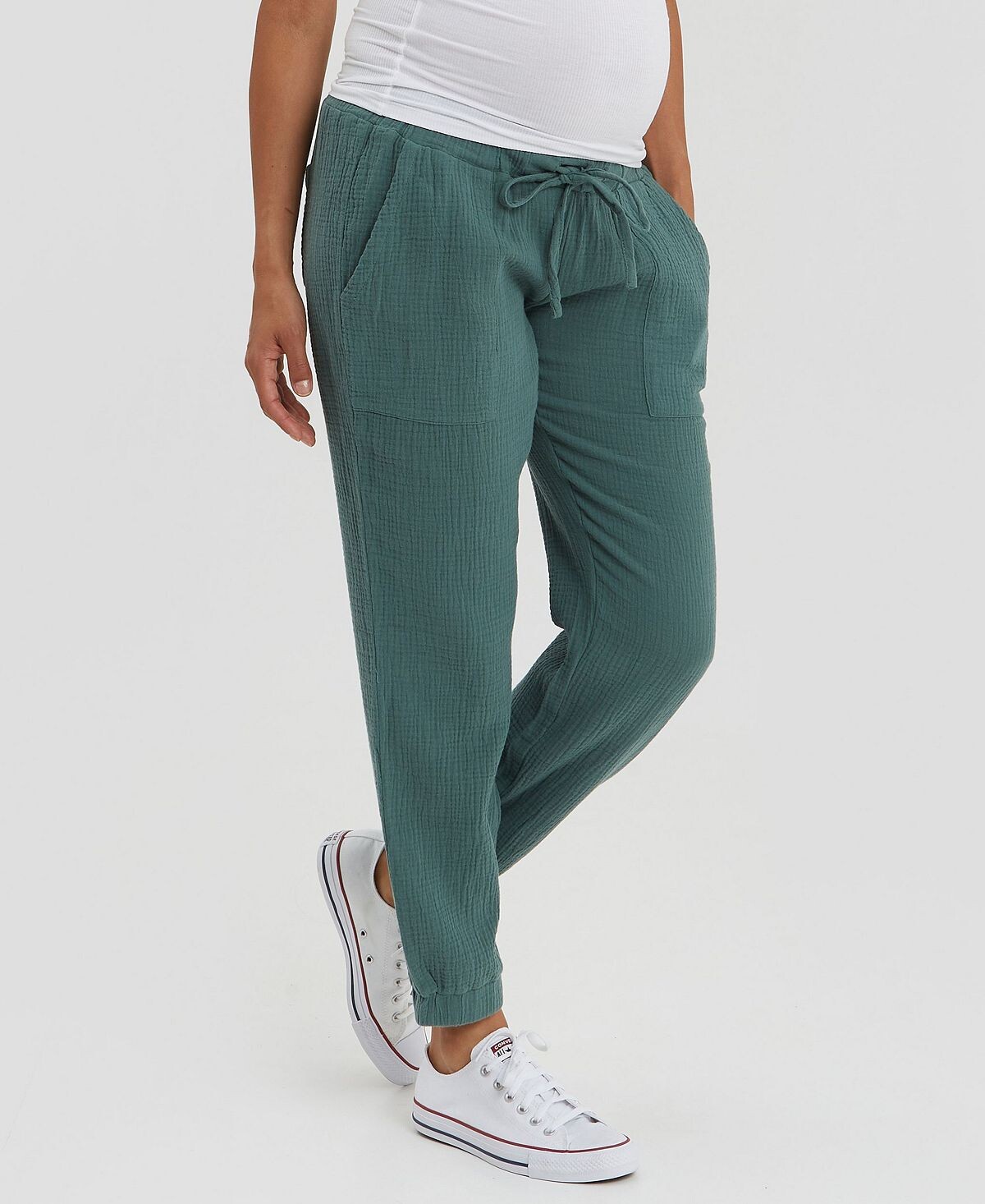 В этих легких, легких спортивных штанах из 100 % хлопка можно отлично провести время по делам, пообедать или отдохнуть. Удобен для длительного ношения в послеродовой период. Функциональные передние и задние карманы.