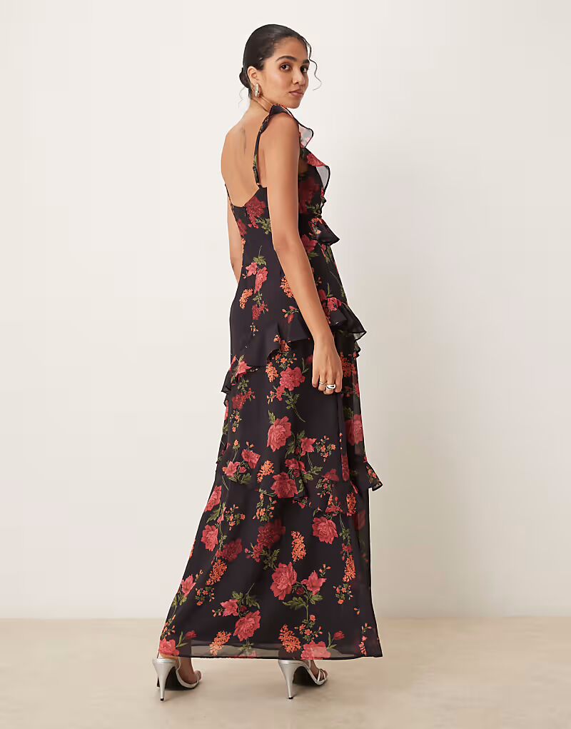 Платье макси с цветочным принтом Anaya черного цвета