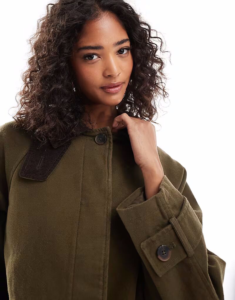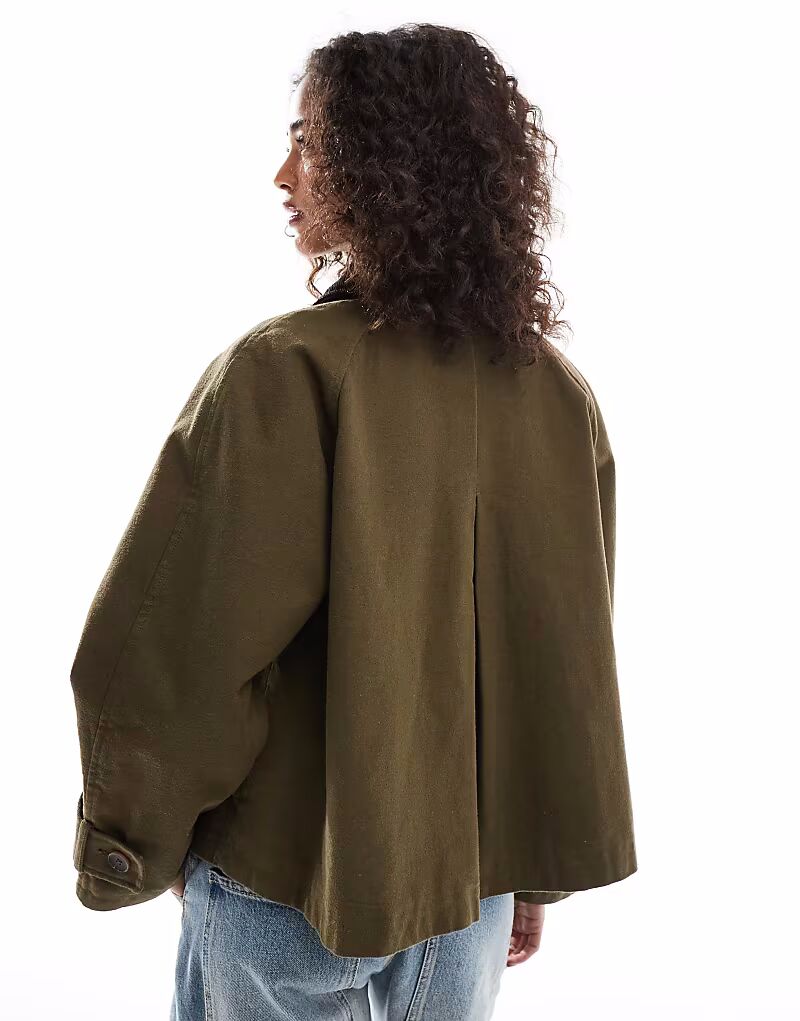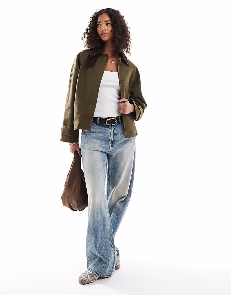 Куртка-амбар ASOS DESIGN с контрастным воротником цвета хаки