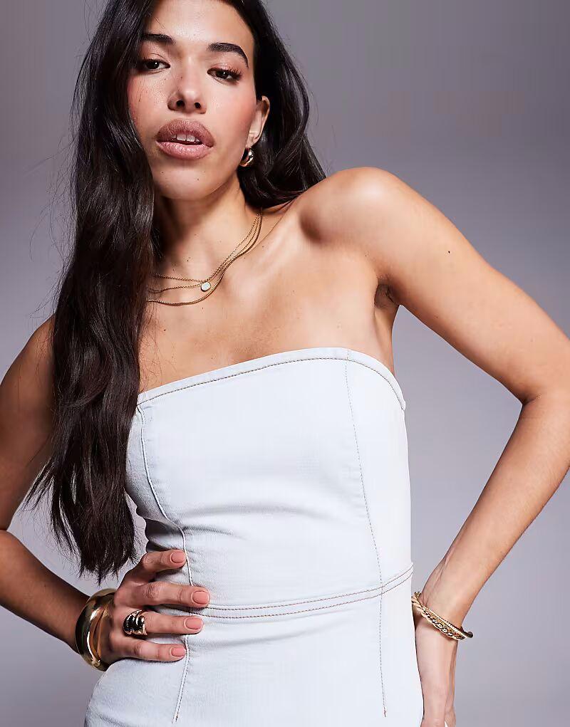 Джинсовое облегающее мини-платье-бандо ASOS DESIGN в цвете lightwash 2 711₽