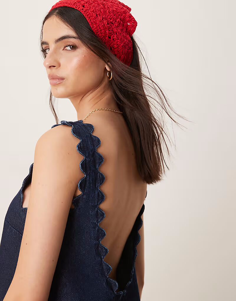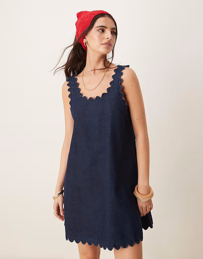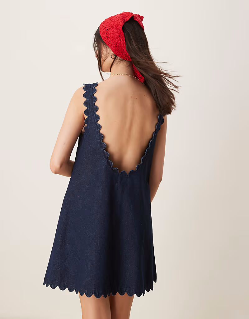 Джинсовое мини-платье ASOS DESIGN с фестончатым краем, цвет: промытый 4 396₽