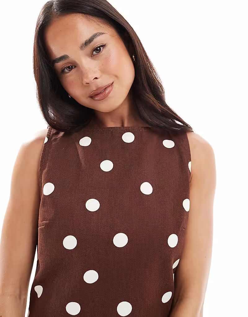 Джинсовое мини-платье ASOS DESIGN с коричневым принтом в горошек