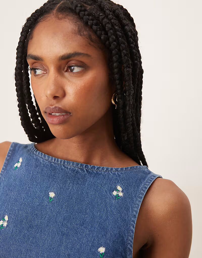 Джинсовое мини-платье ASOS DESIGN с вышитым мелким цветочным узором