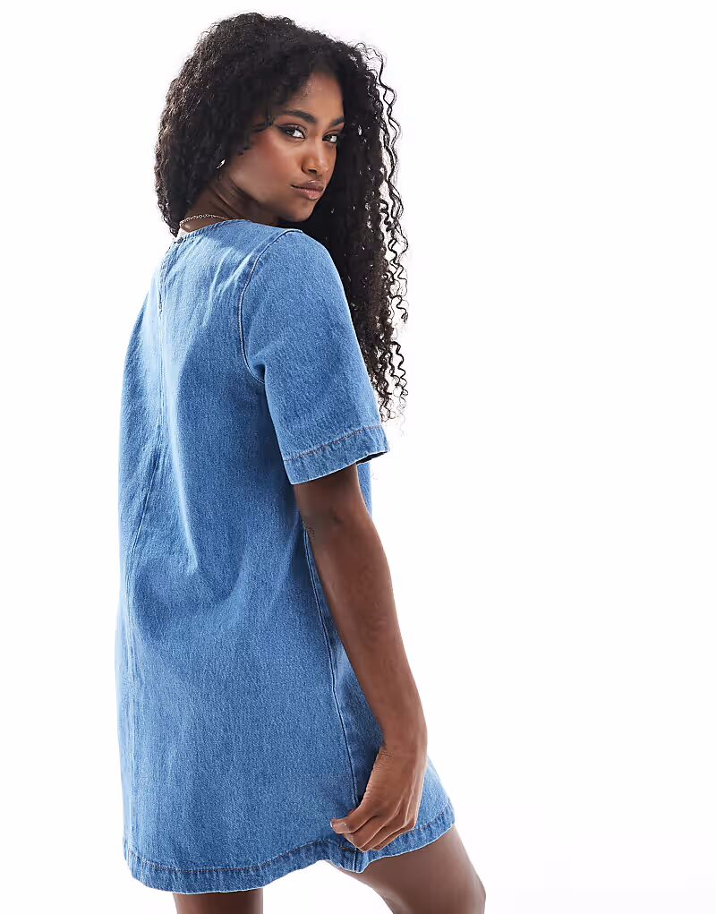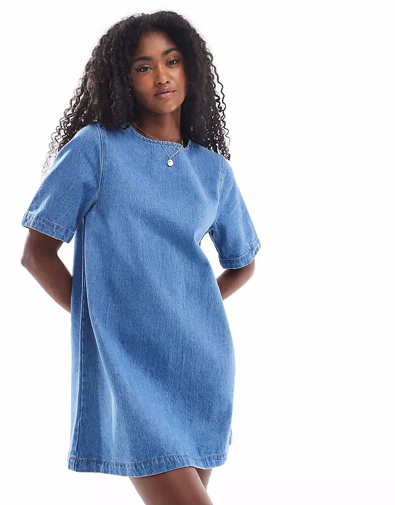 Джинсовая футболка мини-платье ASOS DESIGN средне-синего цвета