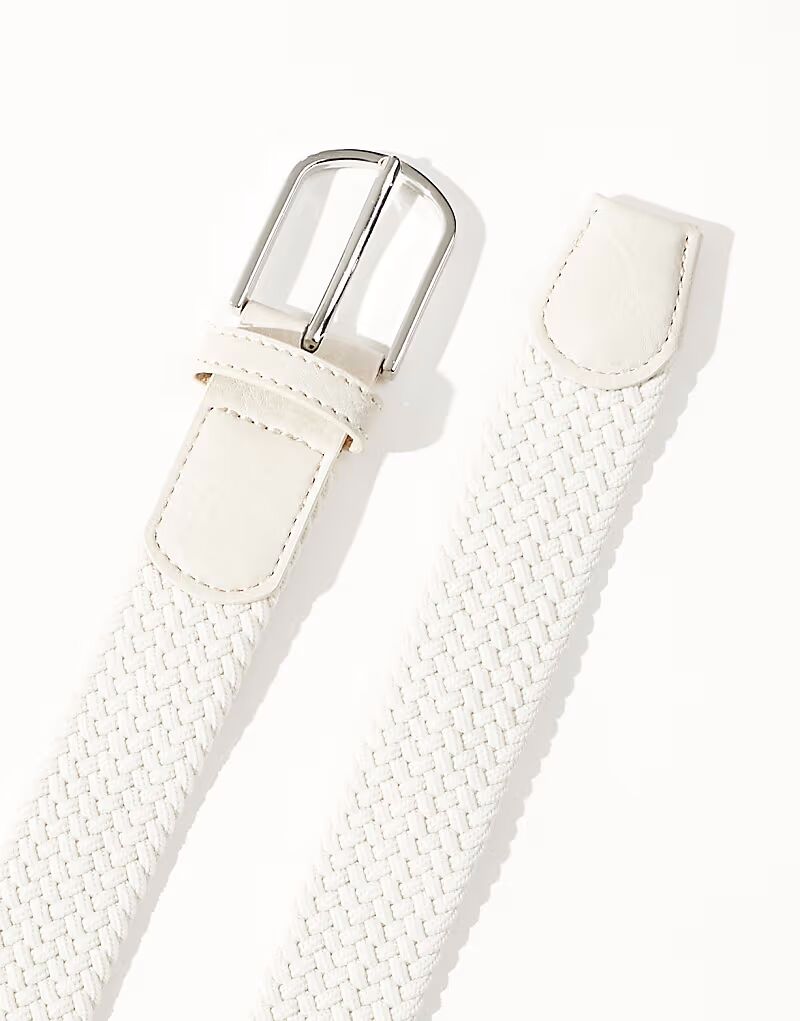 Эластичный тканый ремень ASOS DESIGN из ткани цвета экрю
