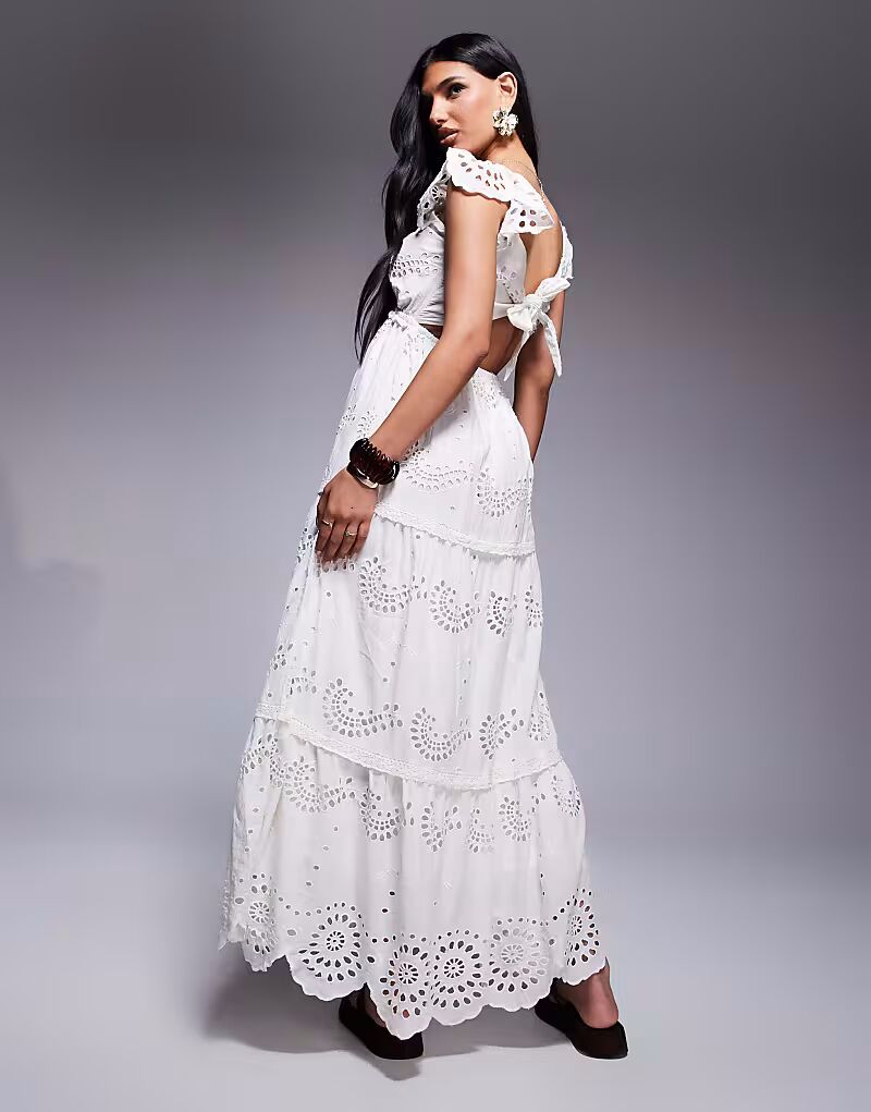 Платье-миди River Island с вышивкой кремового цвета