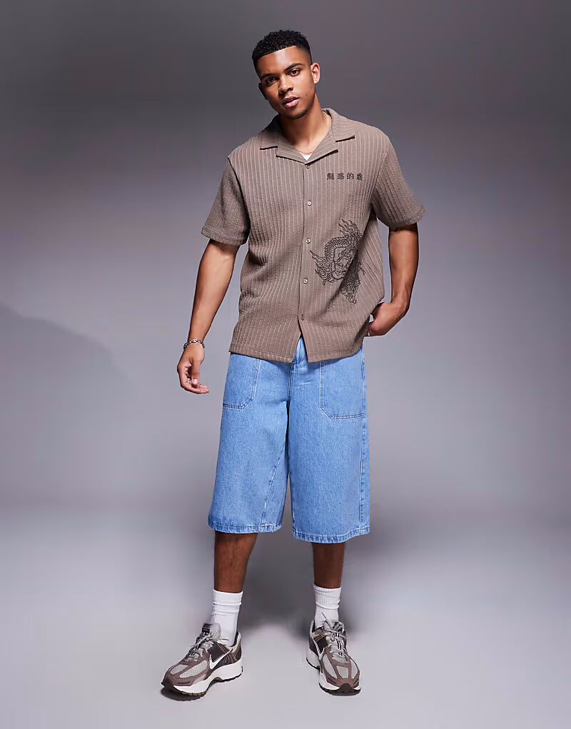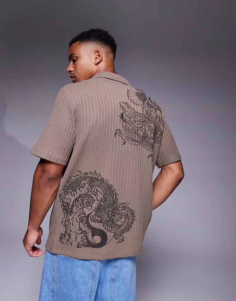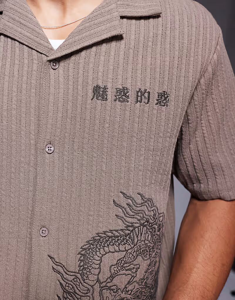 Рубашка с вышитым японским драконом River Island коричневого цвета