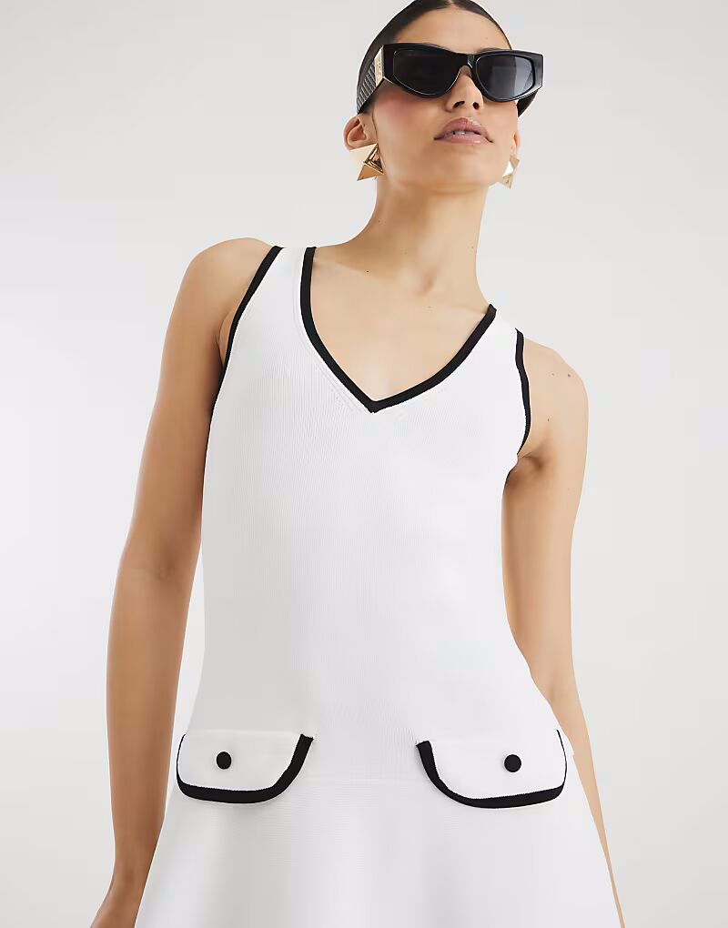 Платье-мини-платье River Island Knit в рубчик белого цвета