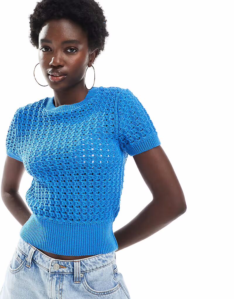 Футболка с сетчатым узором ASOS DESIGN синего цвета