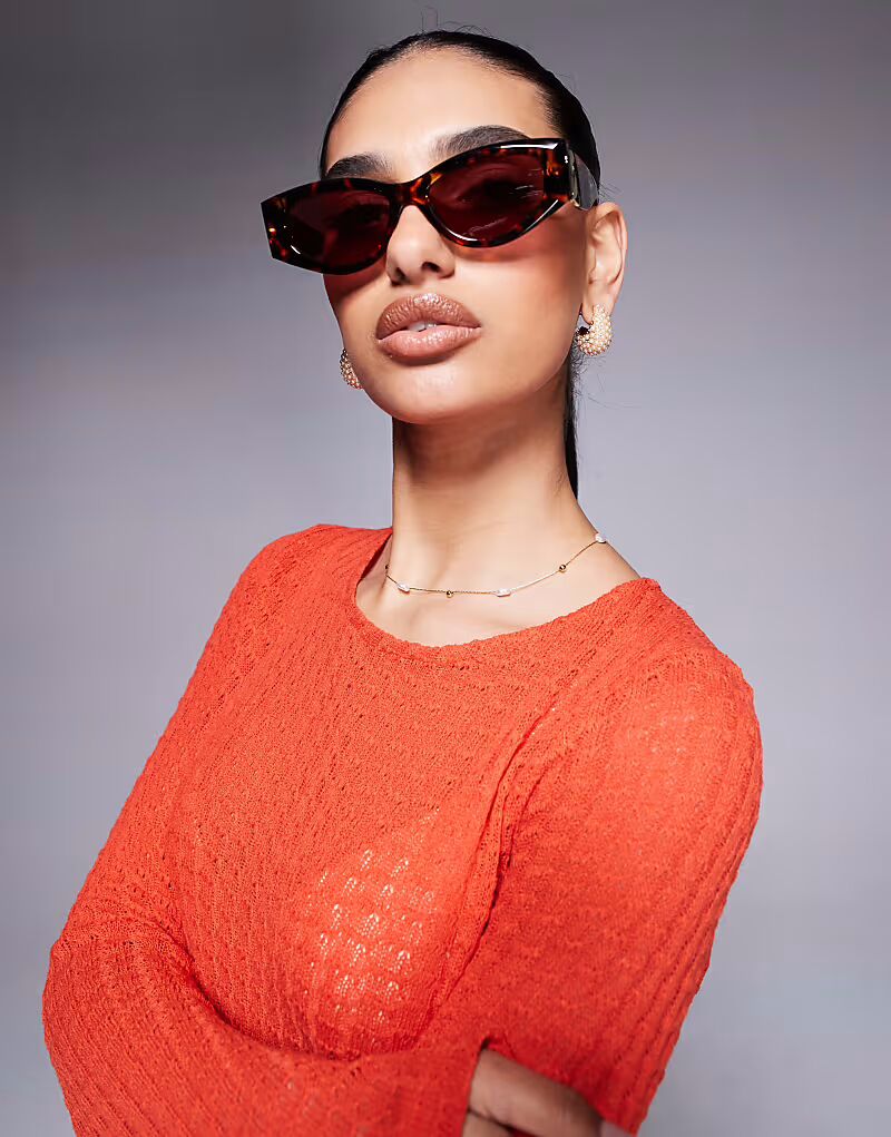 Солнцезащитные очки River Island slim cateye в черепаховой оправе