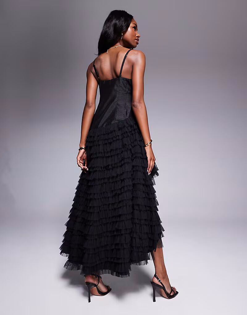 Платье миди с оборками из тюля River Island черного цвета 10 033₽