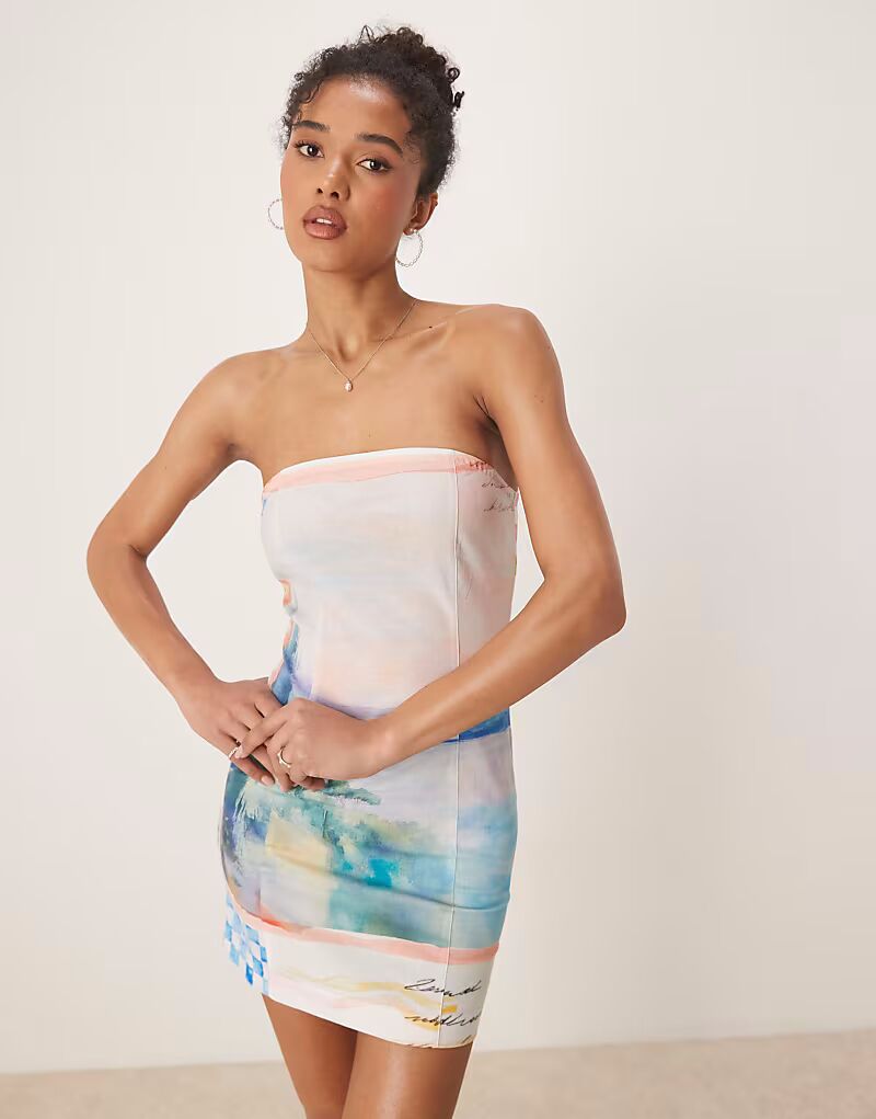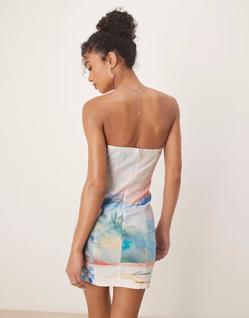 Льняное мини-платье-бандо ASOS DESIGN с принтом открытки