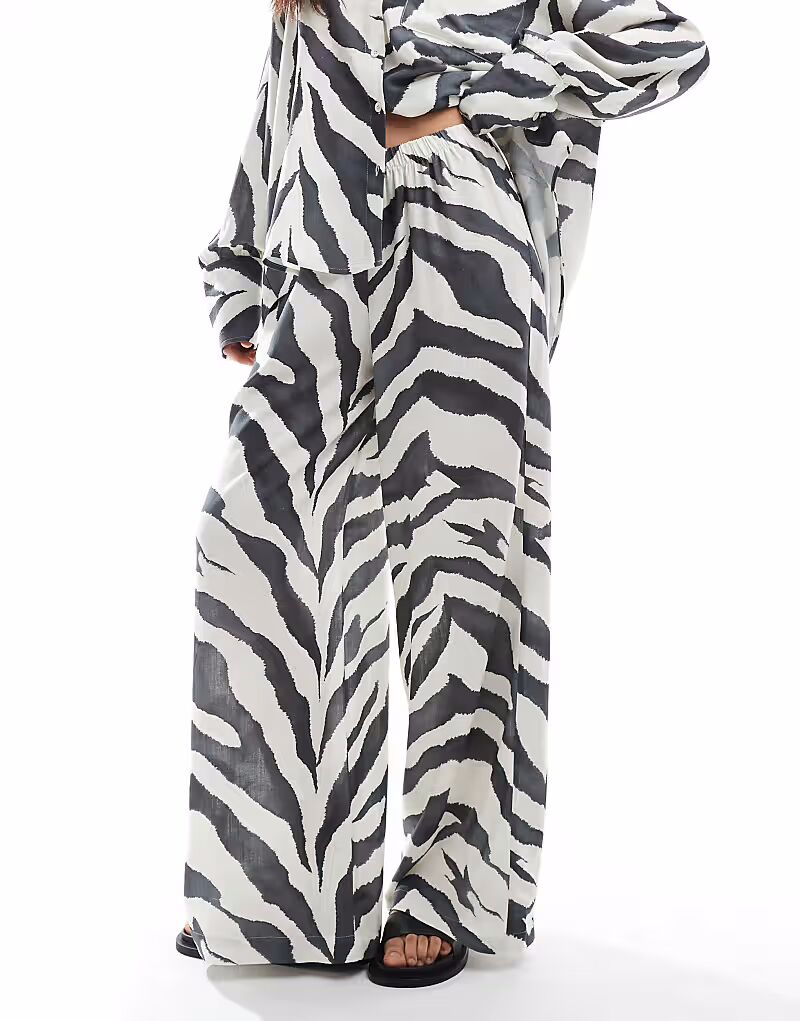 Брюки ASOS DESIGN из льняной смеси с принтом зебры