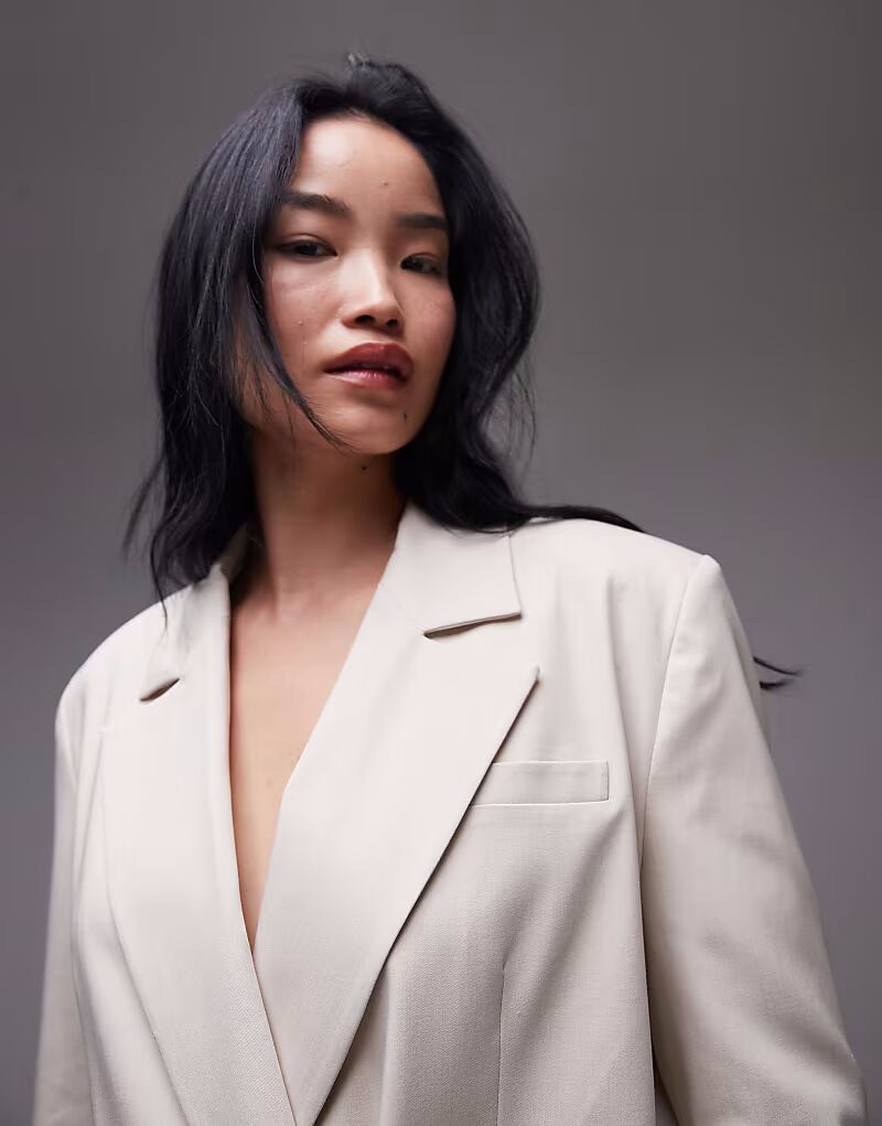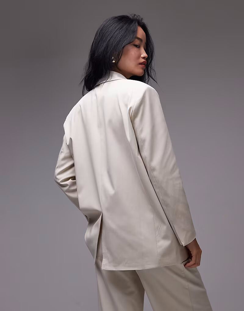 Двубортный блейзер свободного кроя ASOS DESIGN в нейтральном цвете