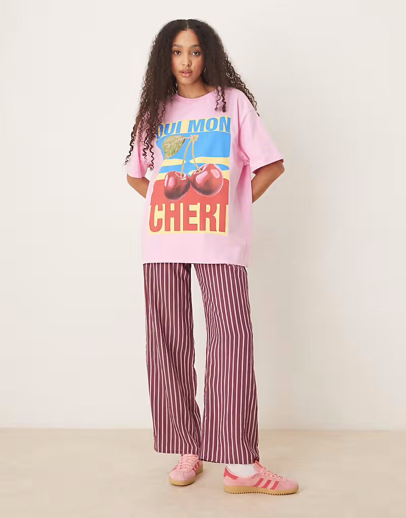 Футболка ASOS DESIGN oversize с принтом Cheri розового цвета