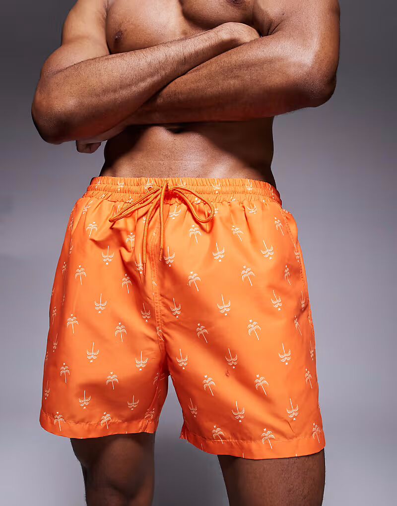 Плавки-шорты с принтом пальм South Beach оранжевого цвета